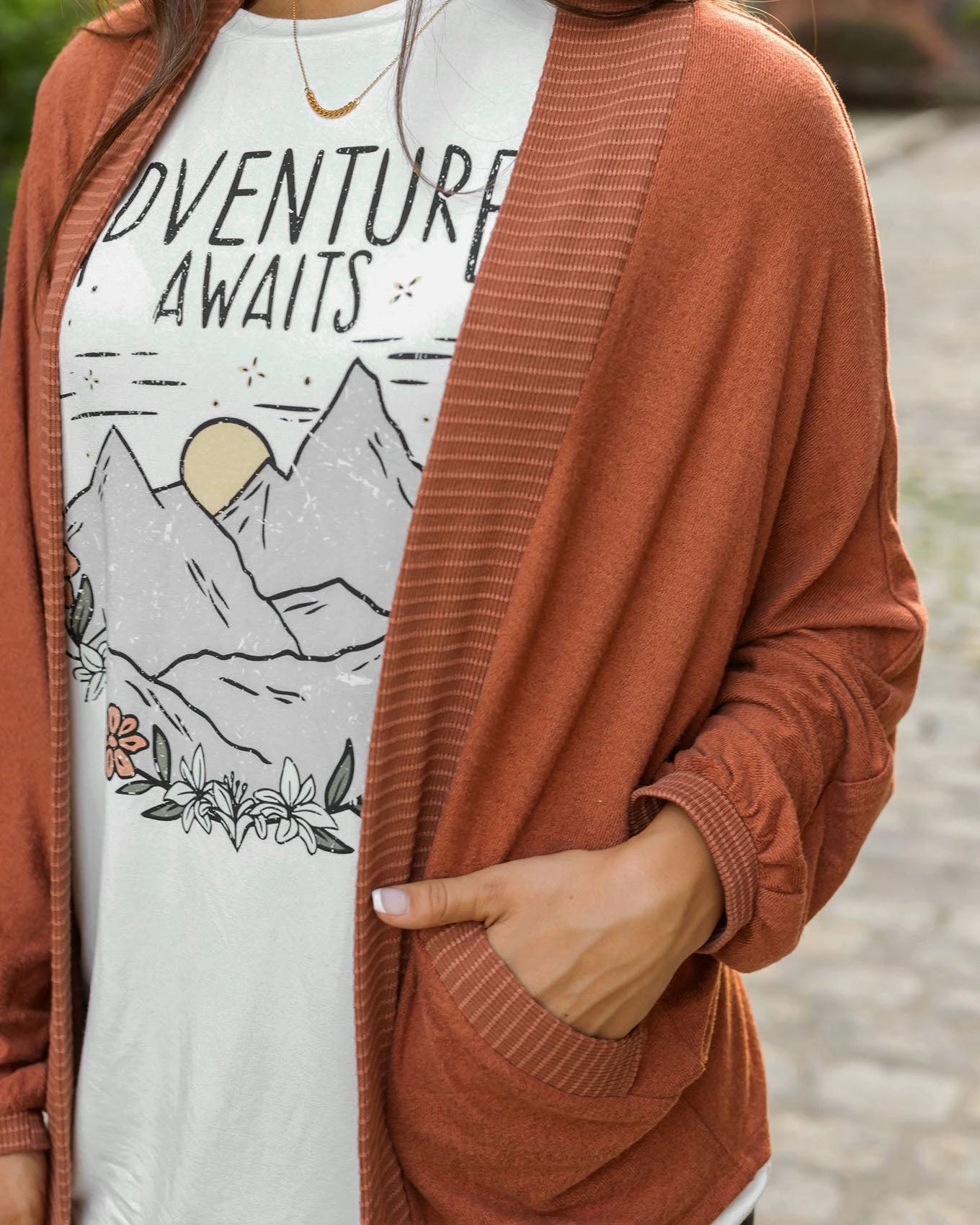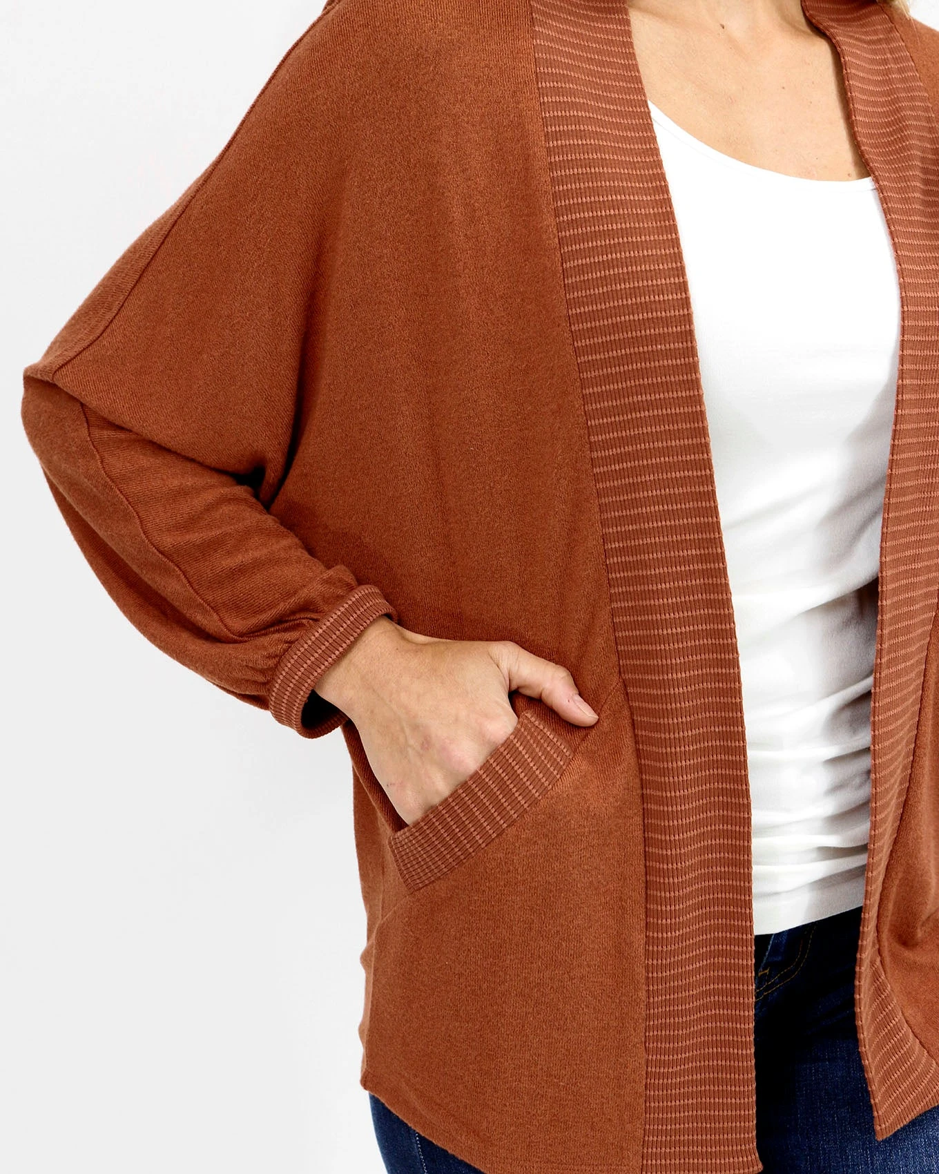 - Dolman style cocoon cardigan with functional pockets in warm cinnamon
