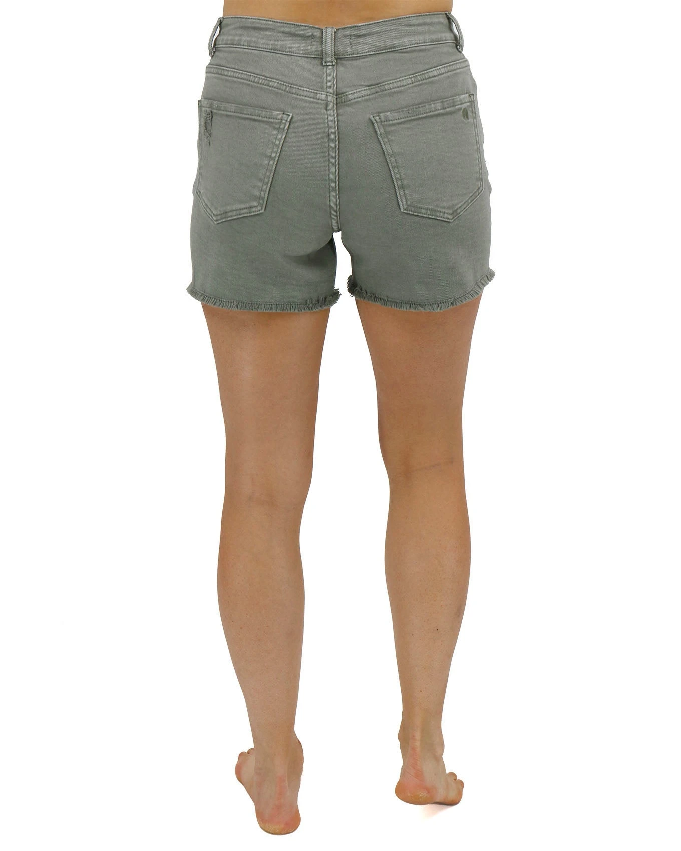 - Ultra comfortable, casual relaxed fit girlfriend fit colored denim shorts in olive