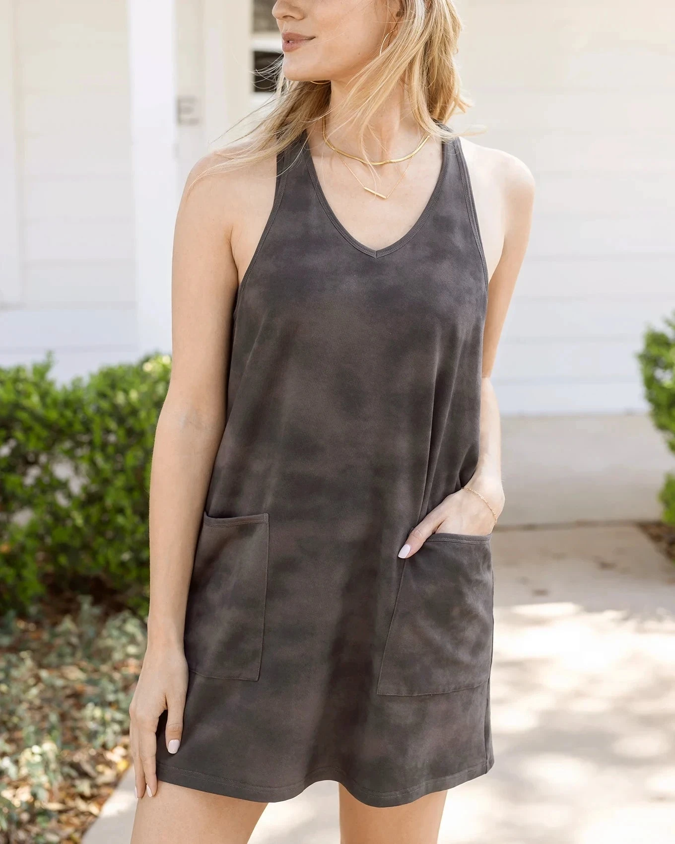 - Tennis style athleisure dress and shorts set in washed tonal print