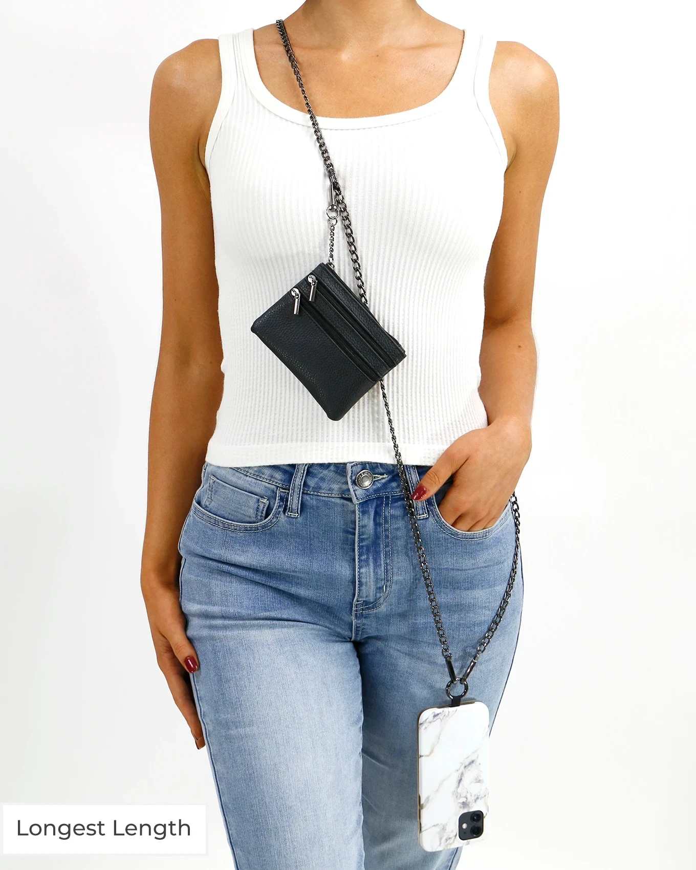 Stay stylish while on the go! A Holiday Exclusive, this Crossbody Cell Phone Chain with Wallet keeps your essentials fashionably secure while you’re on the go! With an adjustable chain for 2 custom lengths, this cell phone chain makes the perfect stocking stuffer!