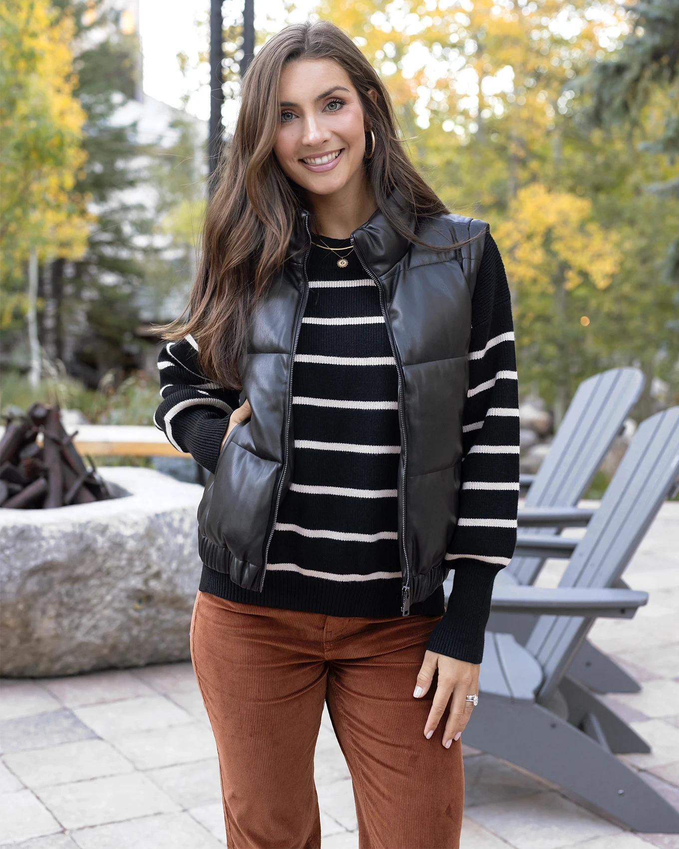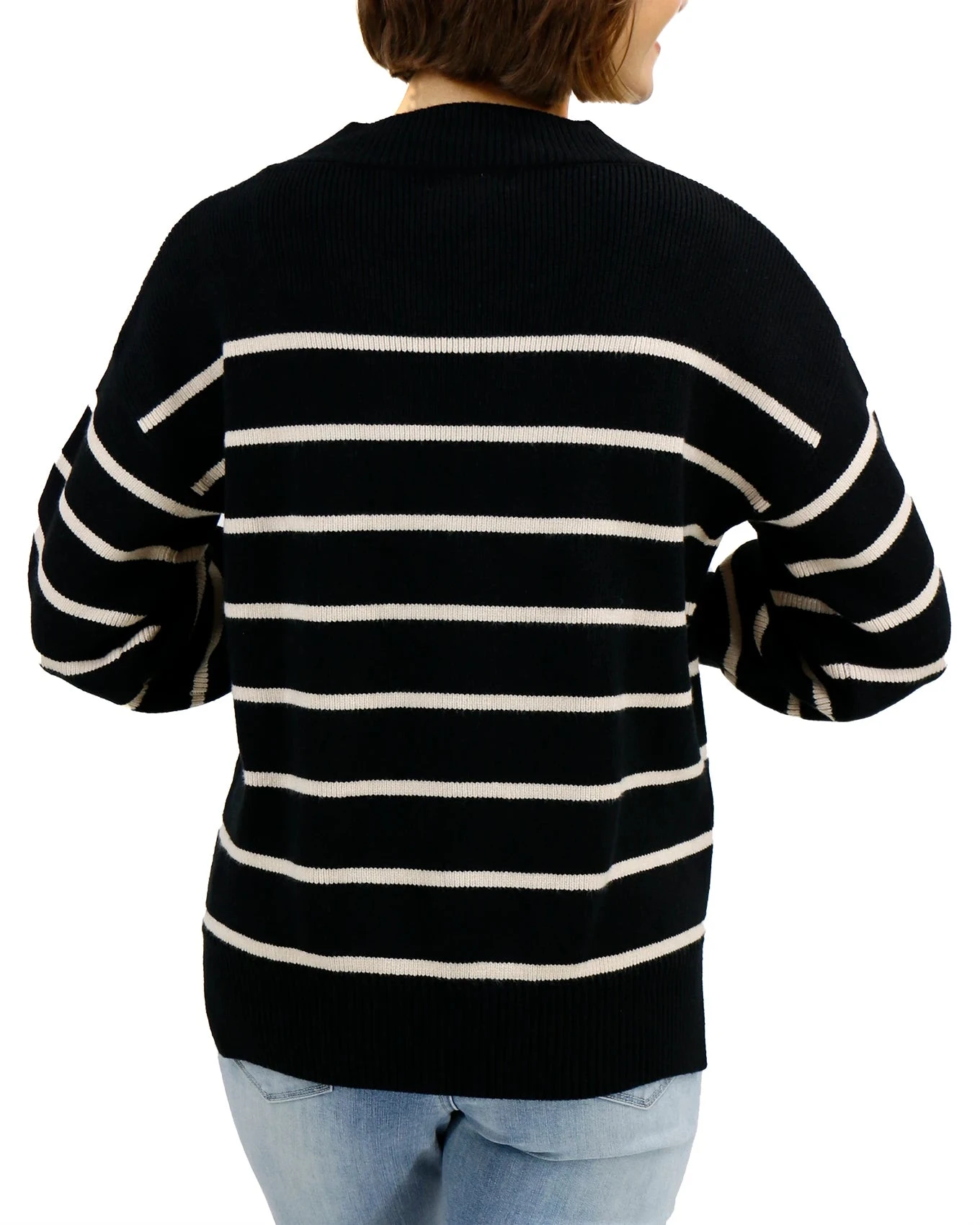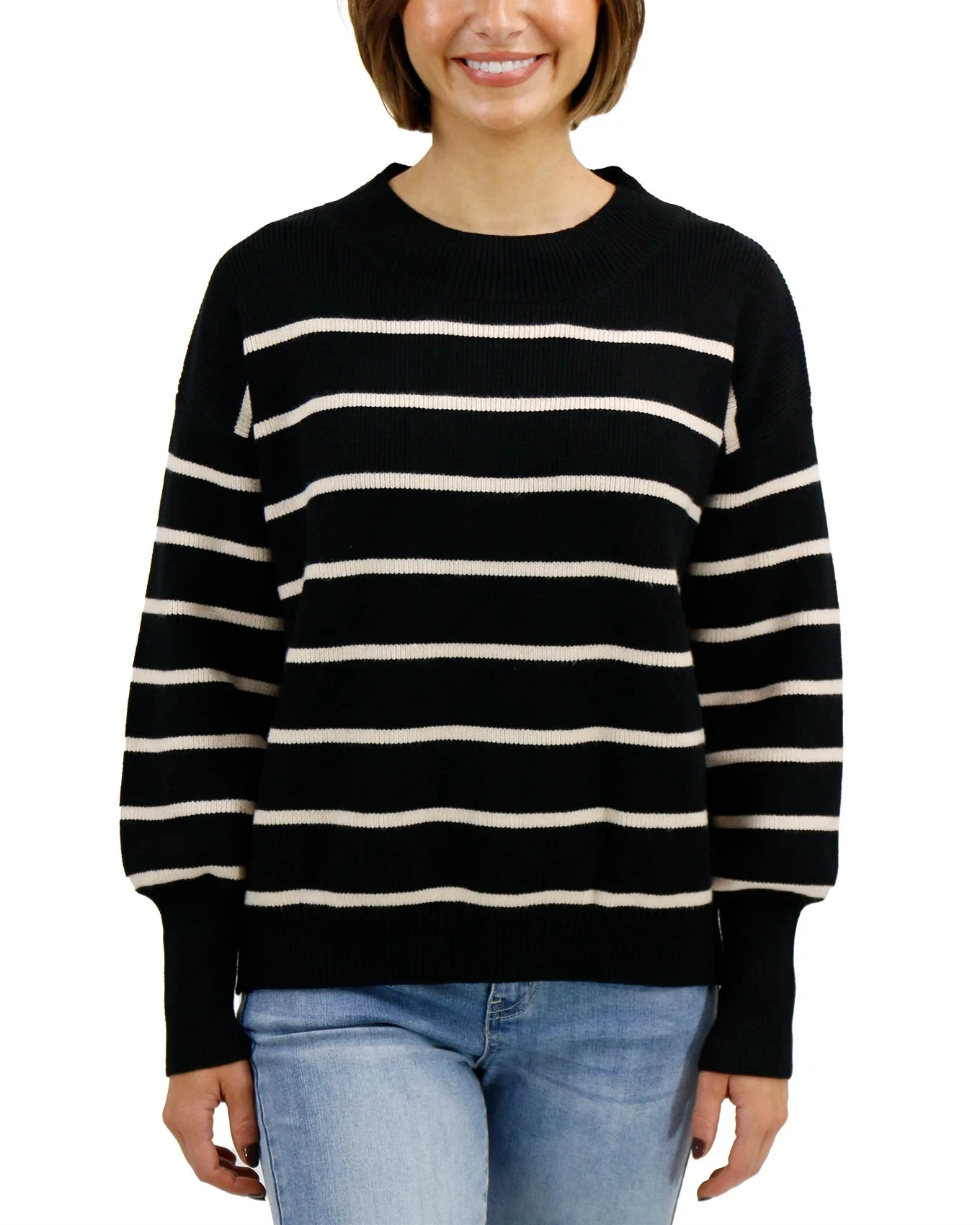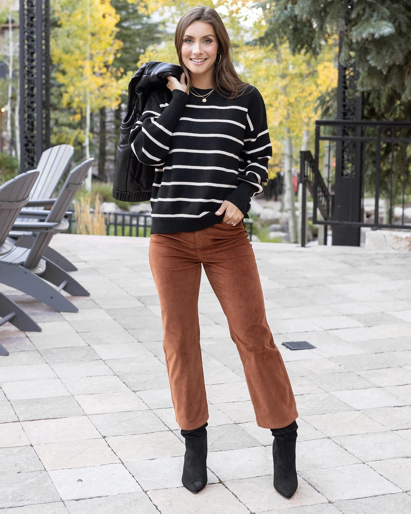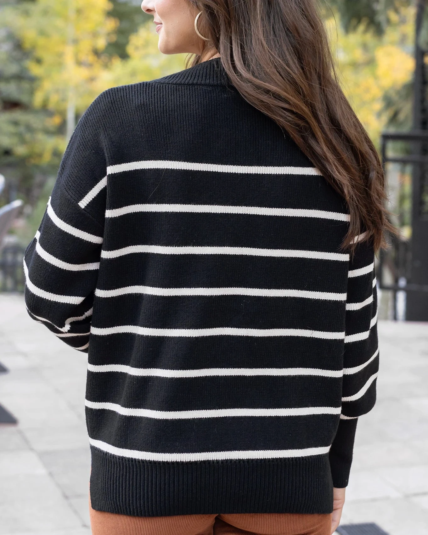 - Throw on this black striped sweater with jeans for a classic look that’s right on trend!Â