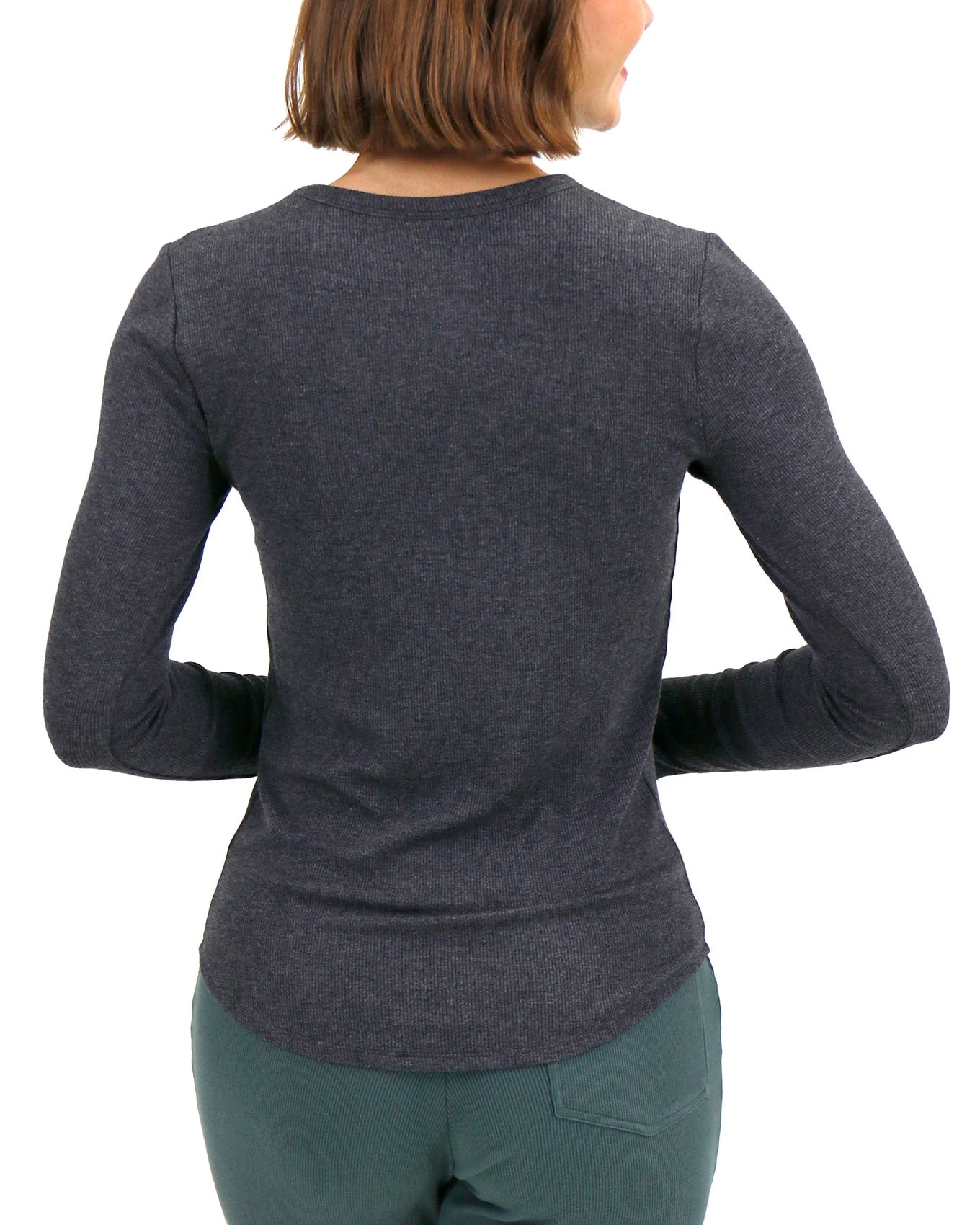 Lets get back to the basics! Meet your new wardrobe staples – G&L | Essentials. Our debut collection of essential tees, tanks, and bottoms is designed to streamline your wardrobe while keeping you perfectly comfy no matter how you choose to style. This Charcoal Essential Ribbed Long Sleeve Fitted Tee, crafted from stretchy ribbed fabric, is incredibly versatile – great for layering, wearing alone, or coordinating with other pieces in the Essentials lineup.