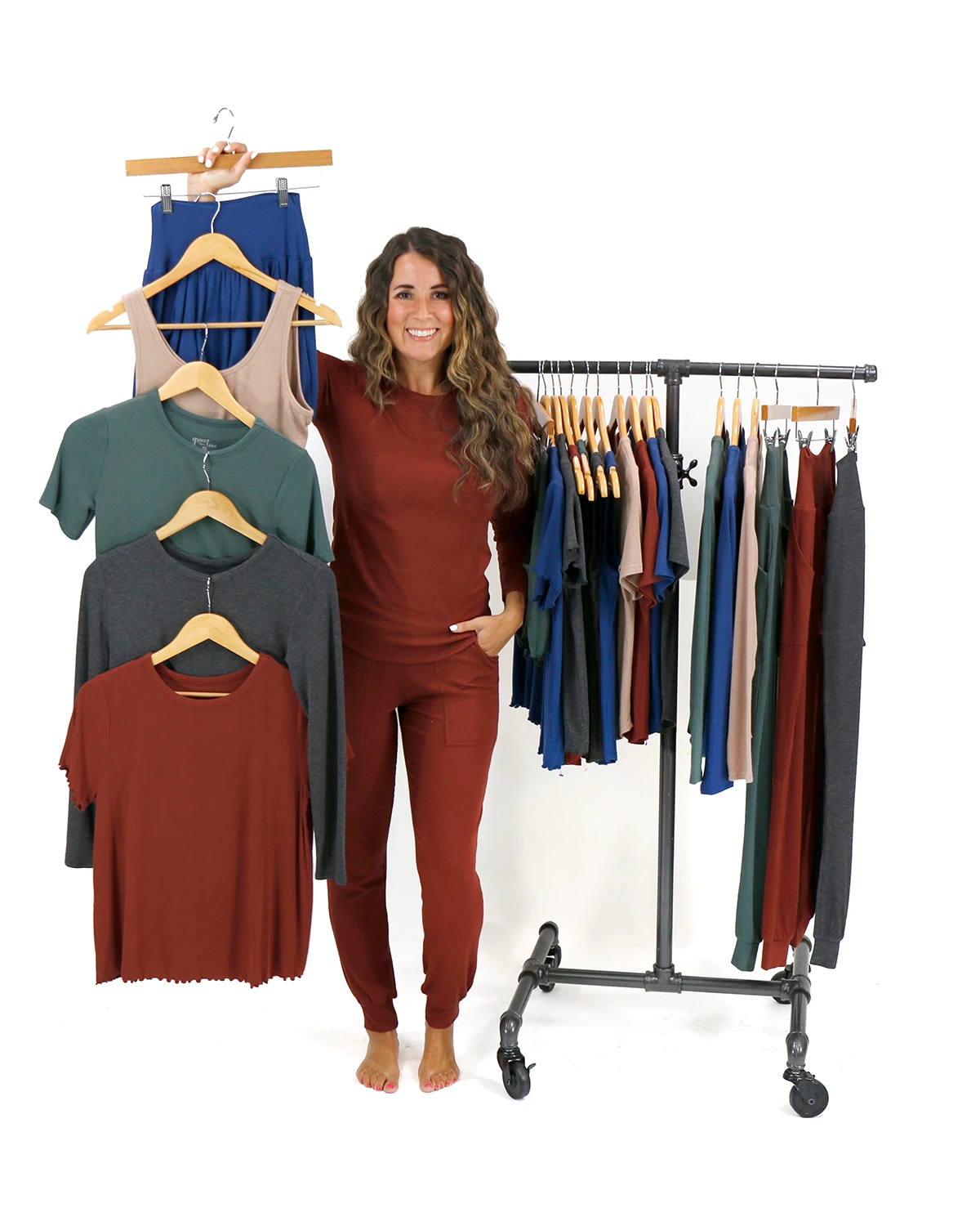 Shop our Essentials Line in long sleeve, short sleeve, tank top, shorts, and joggers!