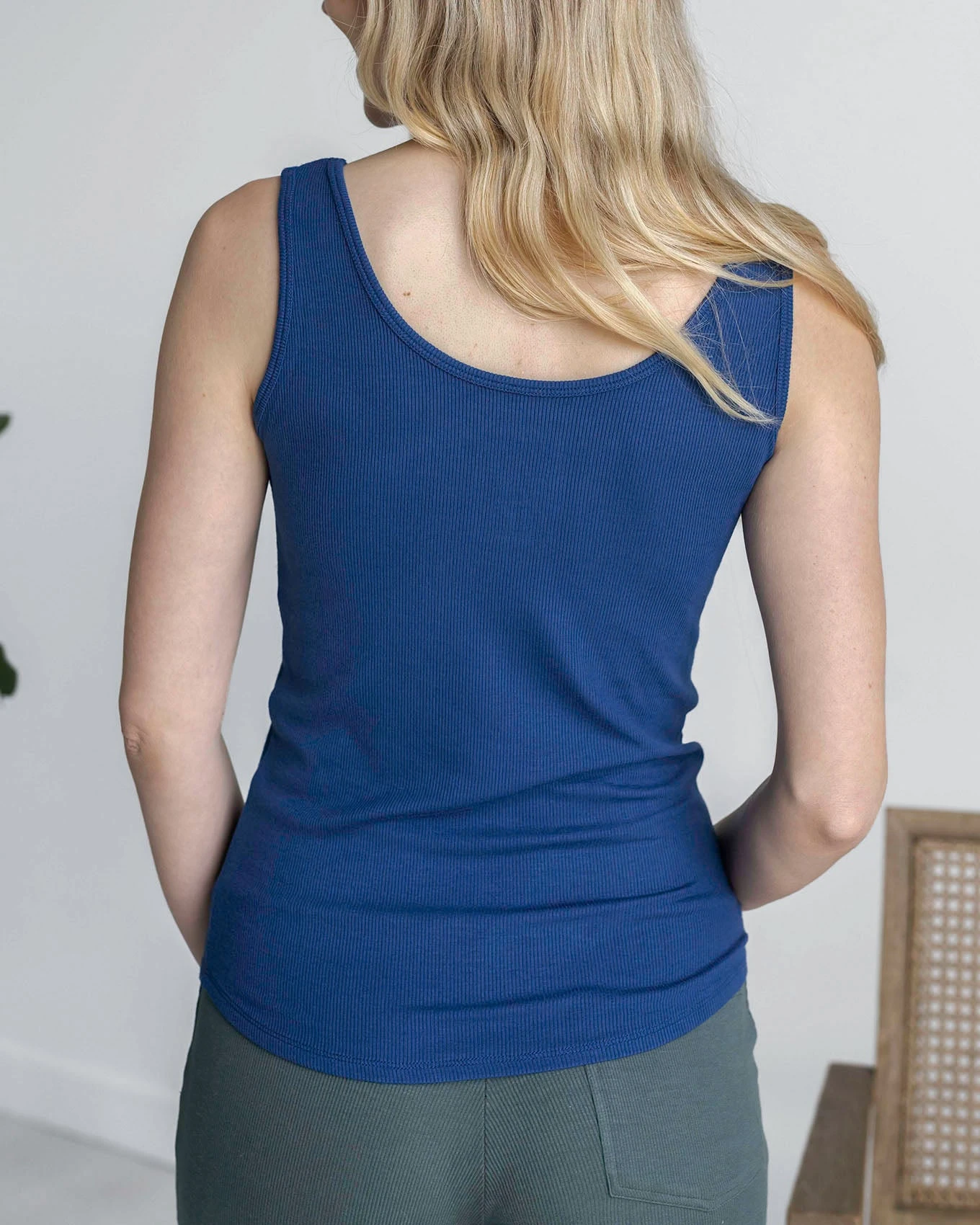 - Slim fit, scoop neck, ribbed tank top in classic blue