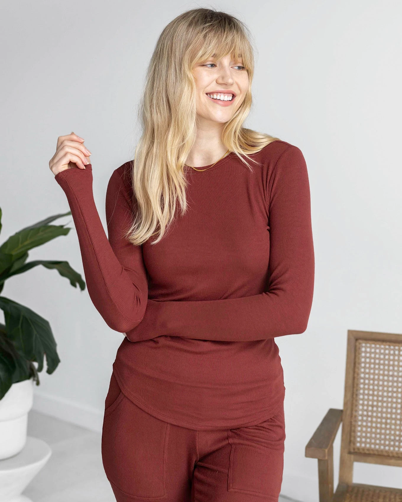 Basics, finally! Our first-ever Grace and Lace Essentials collection includes everything you need for effortless style, made from our signature, ultra-comfy, ribbed fabric you know and love. The warm hue of the Rust Essential Ribbed Long Sleeve Fitted Tee makes this top a versatile, standout piece, ideal for layering, wearing on its own, or pairing with other favorites from the Essentials line.