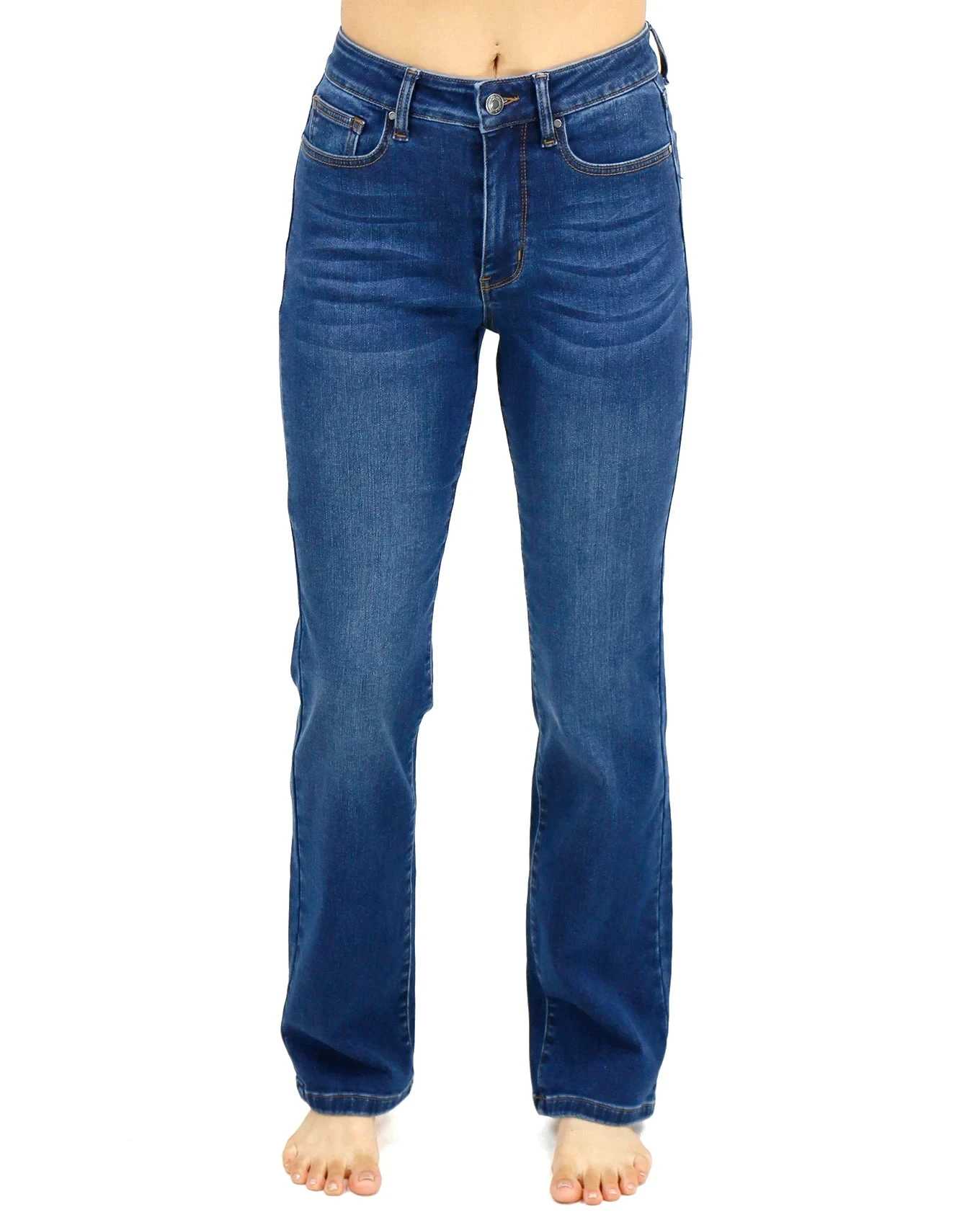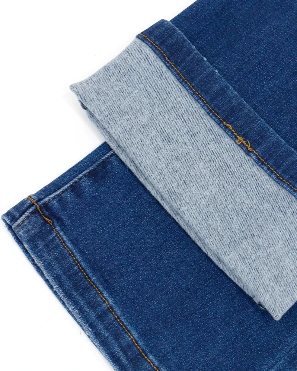 Stretchy straight leg jeans with soft brushed fleece interior, 5 pocket details, zipper fly. These jeans are a true stretch denim with a casual, comfortable fit with a lot of stretch. If between sizes, size down. If ever two sizes in our brand, go with your smaller size.