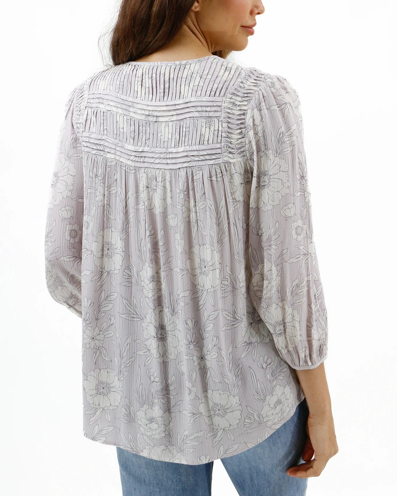 A subtle showstopper! The new Floral Pintuck Top gives you a refreshing way to wear prints this season with its tonal, dusty purple floral design, created in-house by our design team to give you the illusion of an easy-to-wear neutral. The real star of the show is the pintuck detail! Beautifully crafted, accordion pleating graces the front, shoulders, and back yoke to set this flowy boho top apart from all the rest. Enjoy styling this beautiful pintuck blouse for Easter, Mother’s day, springtime celebrations and more!