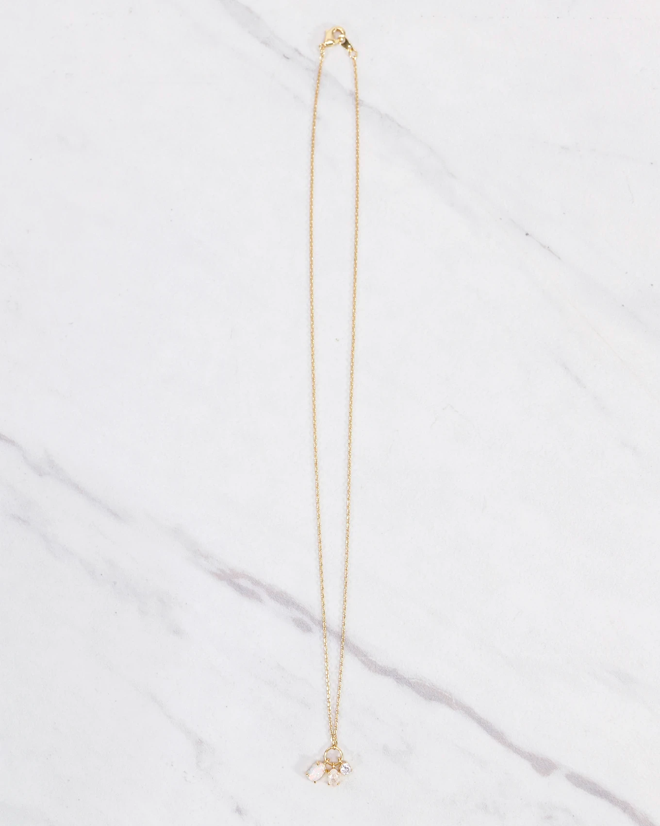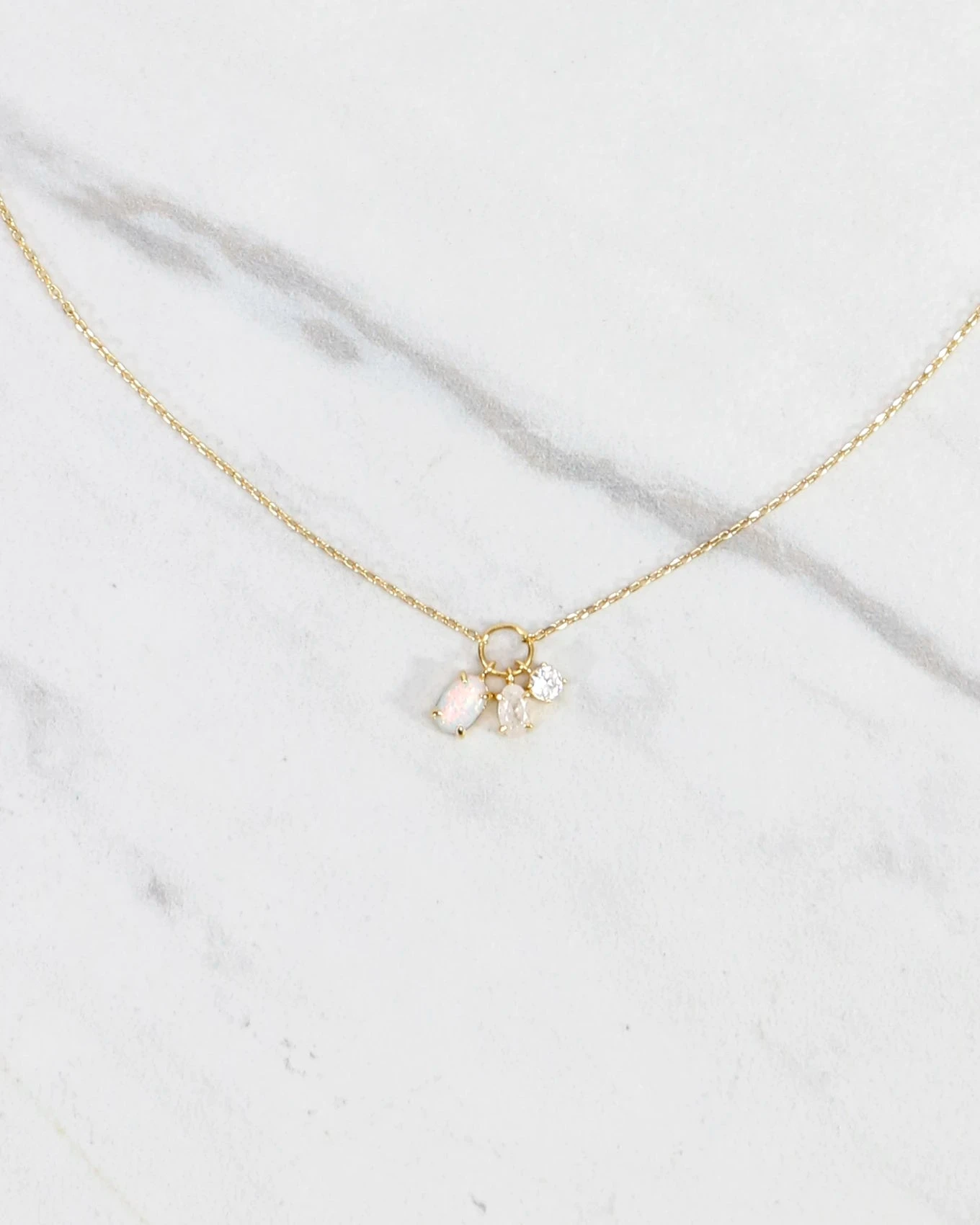 Dainty and feminine, this Gold Gemstone Trio Necklace puts the finishing touch on your springtime look. This multi gemstone necklace features 3 unique gemstone charms, and is perfect for styling alone or layered with other necklaces for a soft pop of color!
