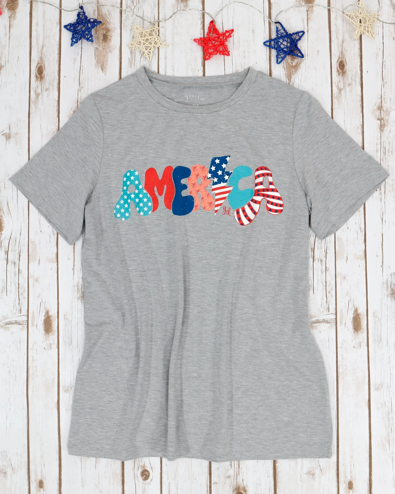 America Girlfriend Fit Graphic Tee | Grey Graphic Tee