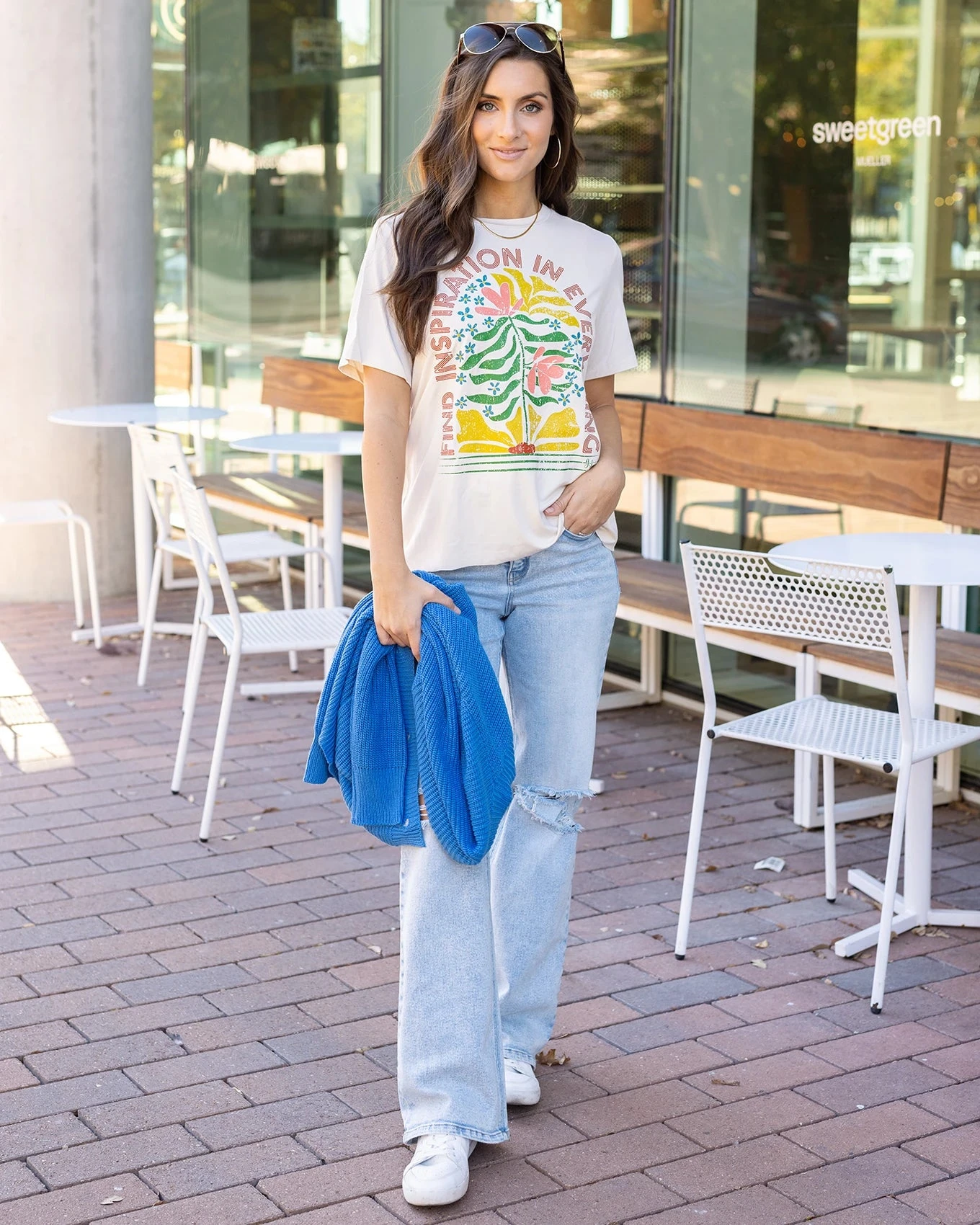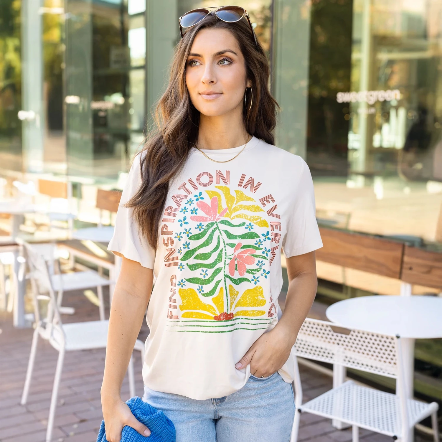 Your favorite basic tee is back in a new graphic print that’s perfect for the new season! The Girlfriend Fit Graphic Tee is known as an everyday go-to and now features a colorful, custom designed, Find Inspiration graphic print that reflects the new season full of possibilities.