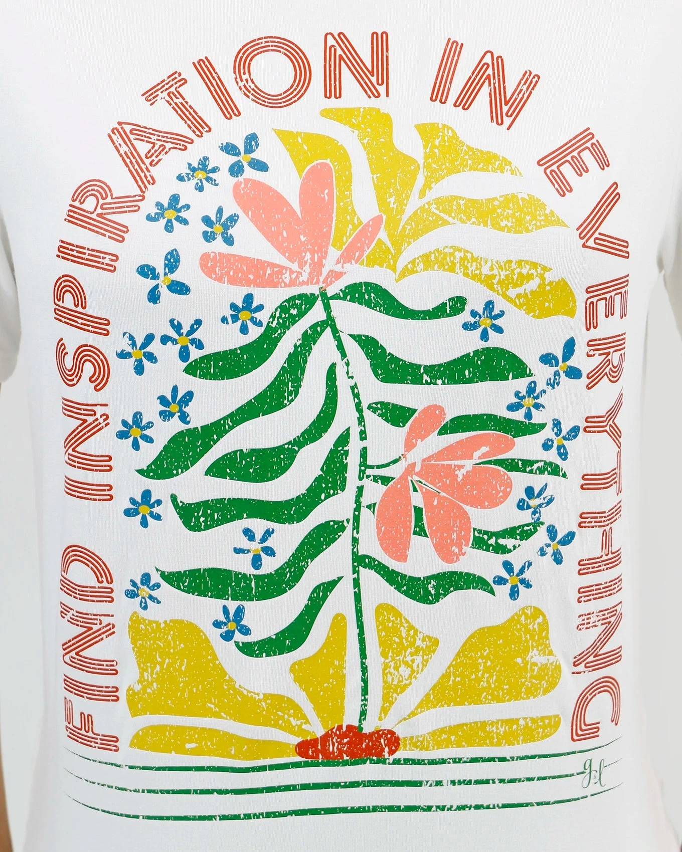 - Relaxed casual fit tee with colorful floral Find Inspiration graphic print