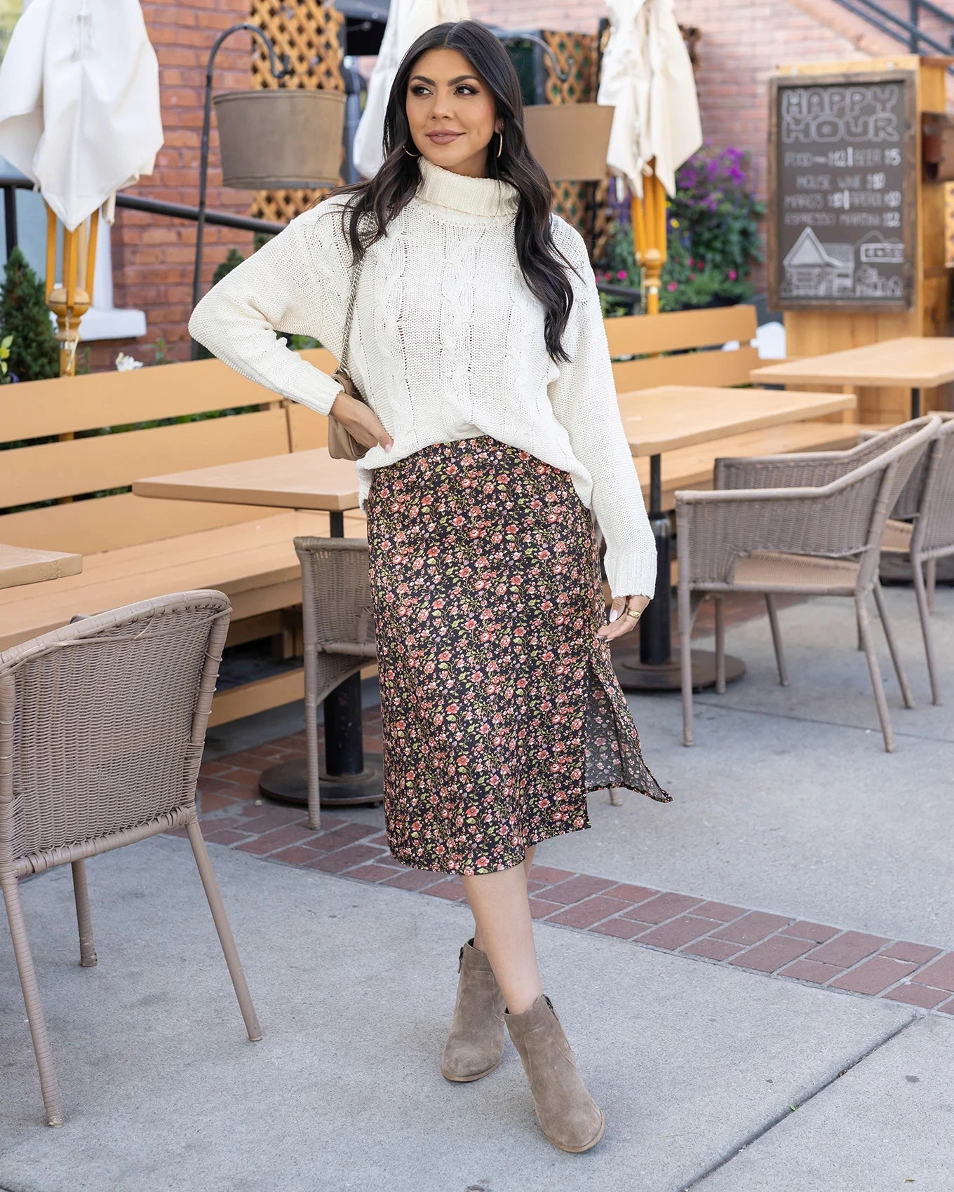 The cold weather staple just got better! The new High Neck Cable Knit Sweater is a classic, timeless design we couldn’t wait to bring you this season, and trust us when we say you’ll be replacing that old scratchy sweater you have in you closet after you grab our version! Made with a soft sweater yarn with a touch of stretch running through, this cozy cable knit sweater features a wider turtleneck that sits comfortably away from the neck, a smooth, never-itchy texture, and is a quintessential fall and winter staple every wardrobe needs.Â