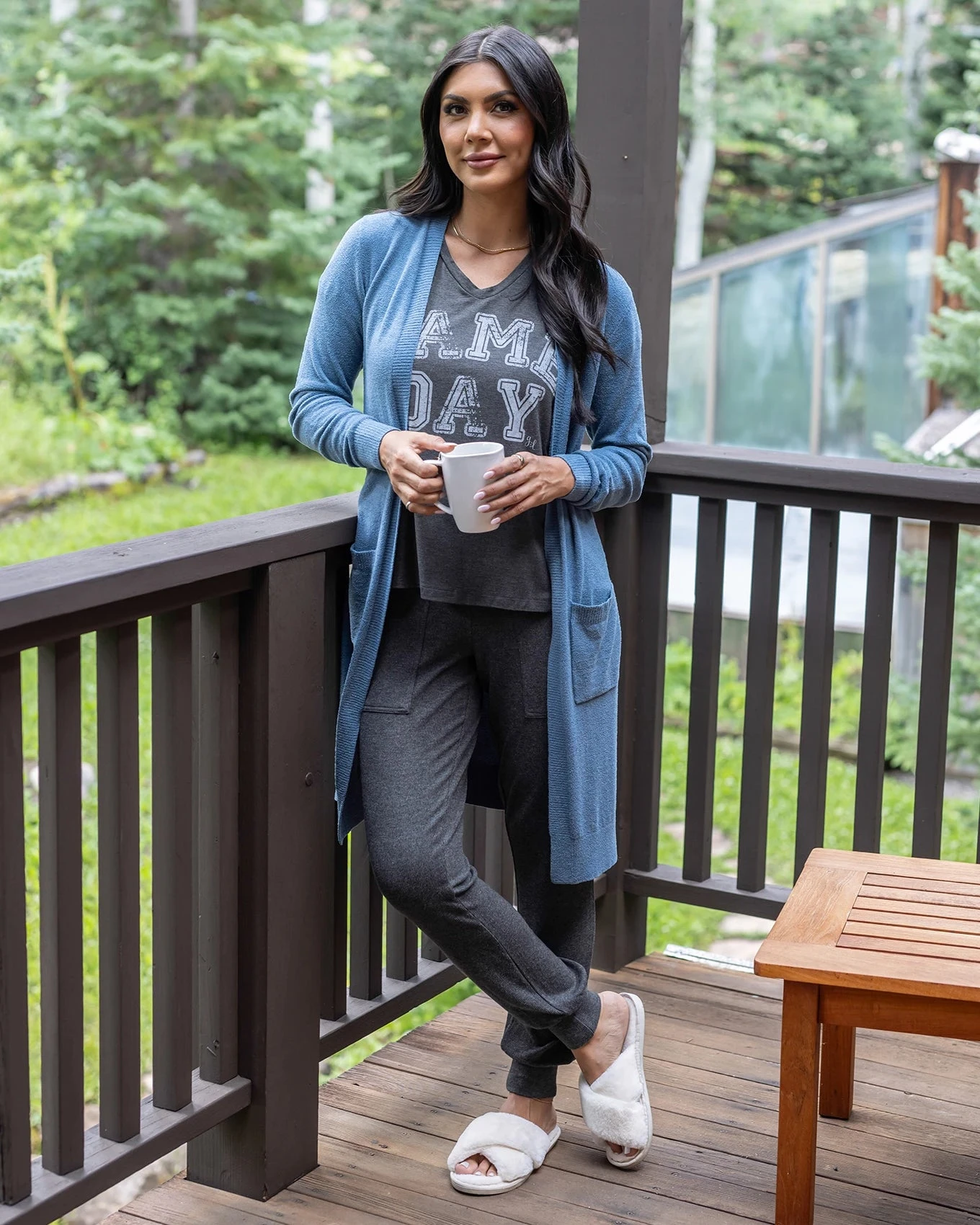 - Buttery soft, lighter weight knit Bambü duster cardigan in dusk blue