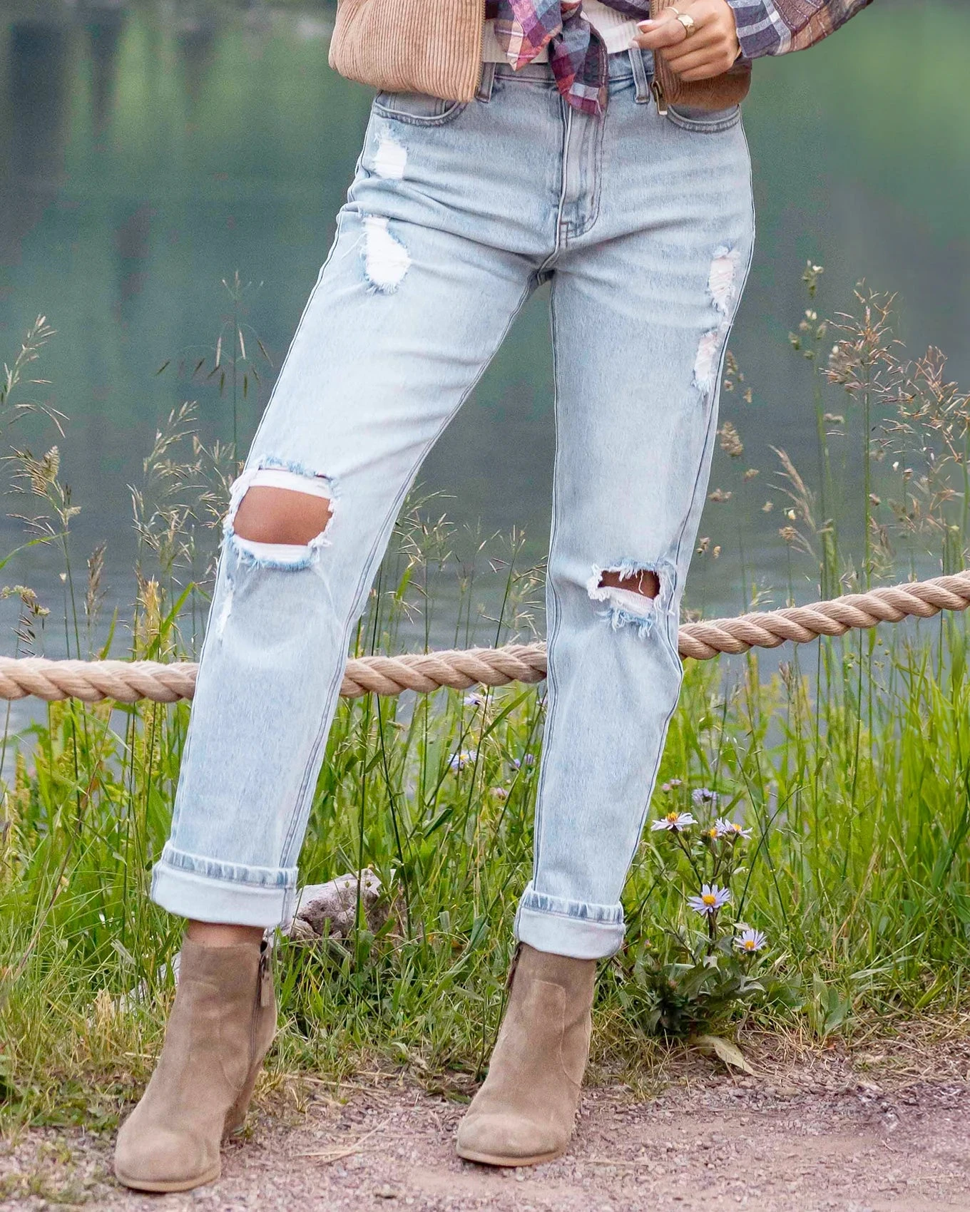 - Choose between trendy distressed or classic, non distressed finish with rolled cuffed hem for ultimate versatility (can be uncuffed for full length if preferred!)