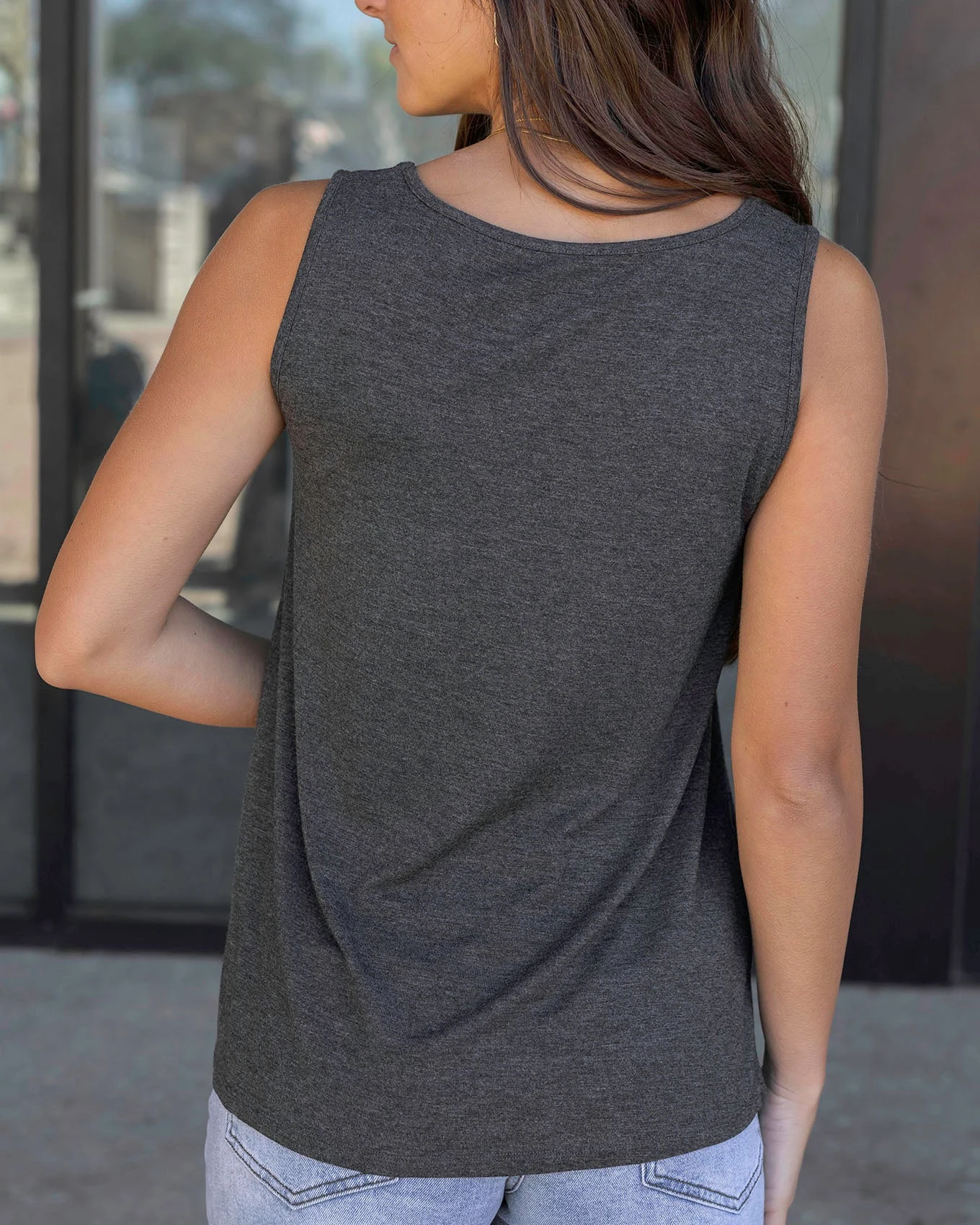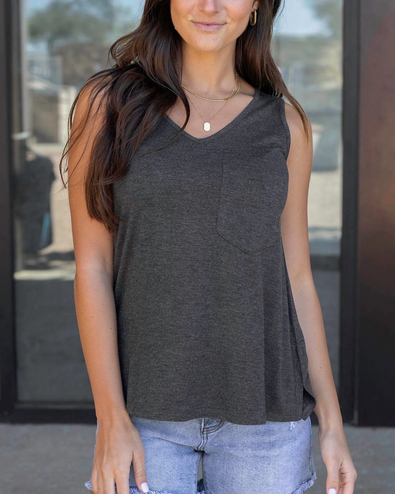 Charcoal Perfect Pocket V-Neck Tank | Grey V-Neck Tank Top