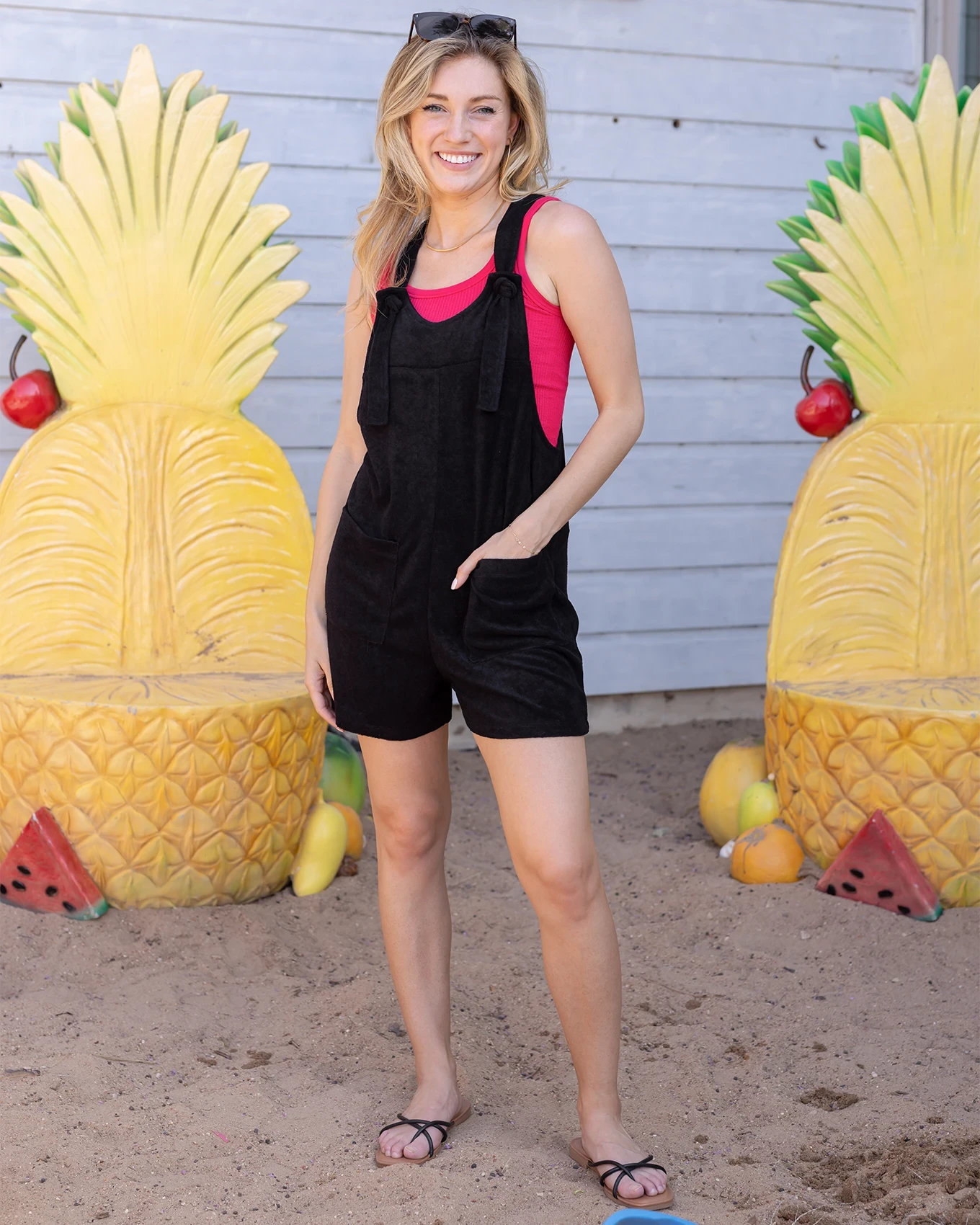 Made for summertime fun! The new Poolside Terry Cloth Romper makes water days a breeze! Crafted from lightweight, stretchy, French terry, this romper is designed to keep you cool and comfy from poolside lounging to casual errands. With self-adjustable straps, pockets, and an effortless fit, it’s the perfect terry cloth swimsuit cover up to throw on and go. Whether layered over your fave Brami or worn solo, this terry cloth romper is everything your sunny day wardrobe needs.