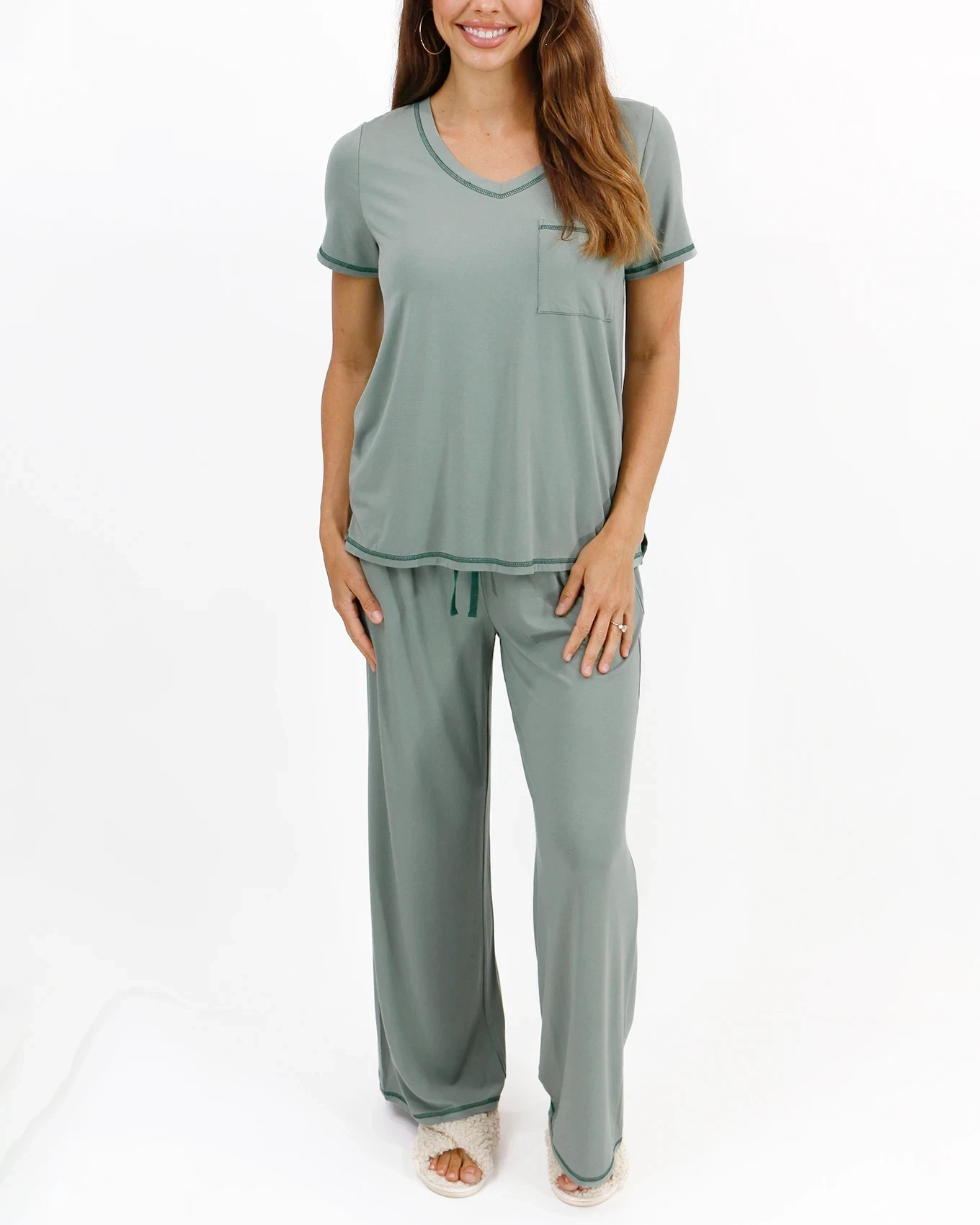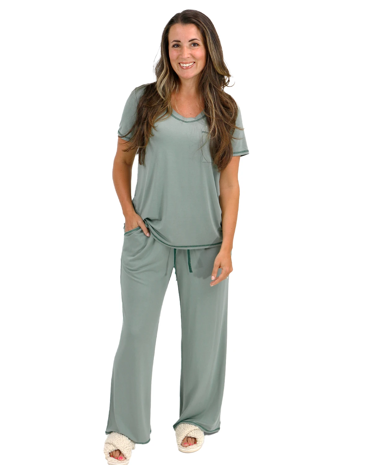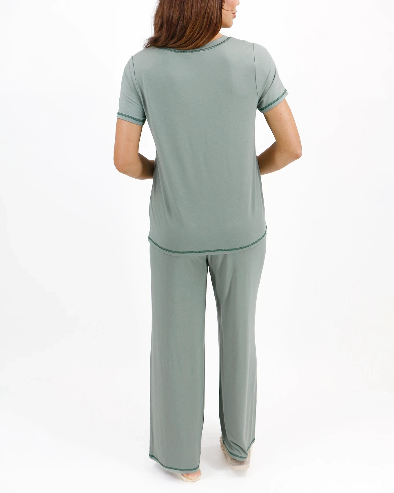 - Relaxed fit, sage green, short sleeve pj set featuring our signature rayon and bamboo yarn blend with breathable, temperature-regulating properties with a silky soft feel