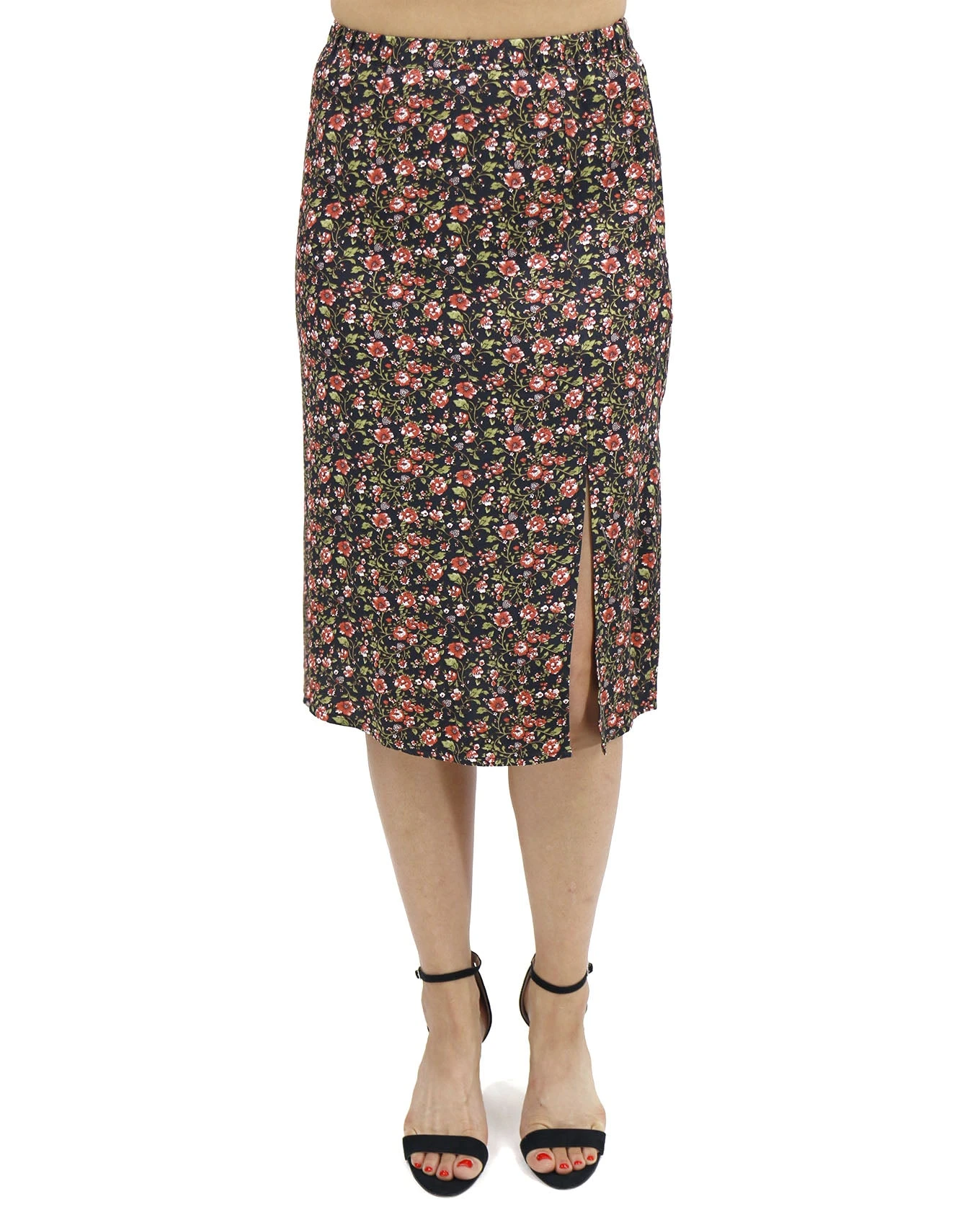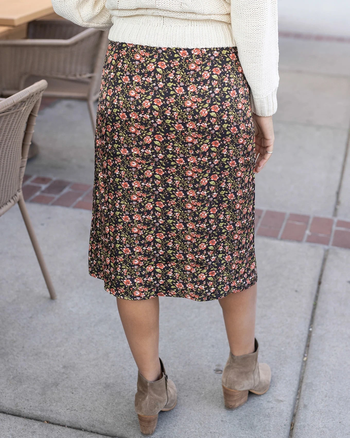 Chic satin without the fuss! Introducing the Satin Midi Floral Skirt! Designed to keep your style on trend and maintenance-free, this gorgeous midi skirt features a custom designed, black ditsy floral print on a no-fuss, unique, twilled satin that’s comfortable and silky smooth. Pair this satin skirt with your favorite blouses, sweaters and tops this season for an easy yet stunning style!Â