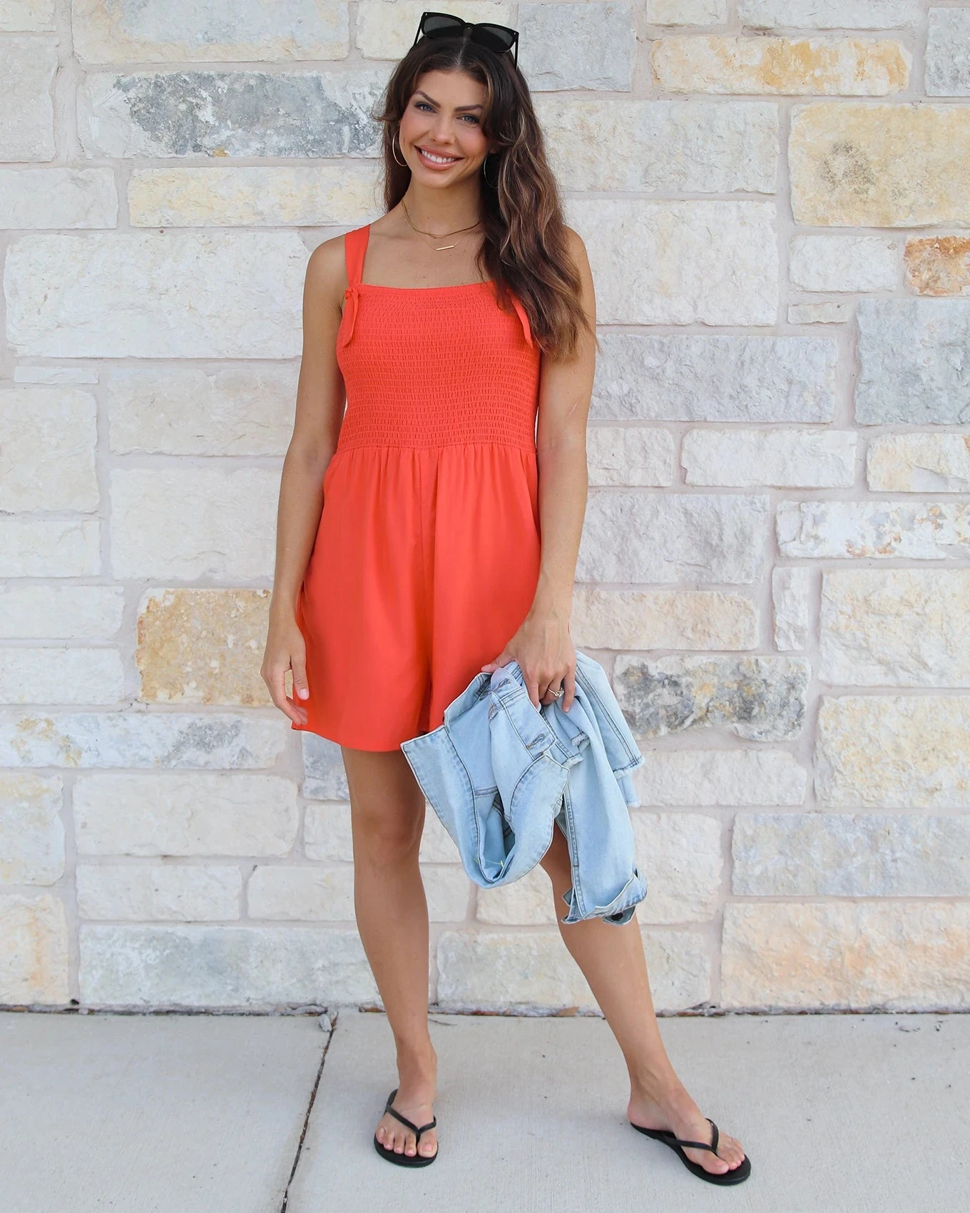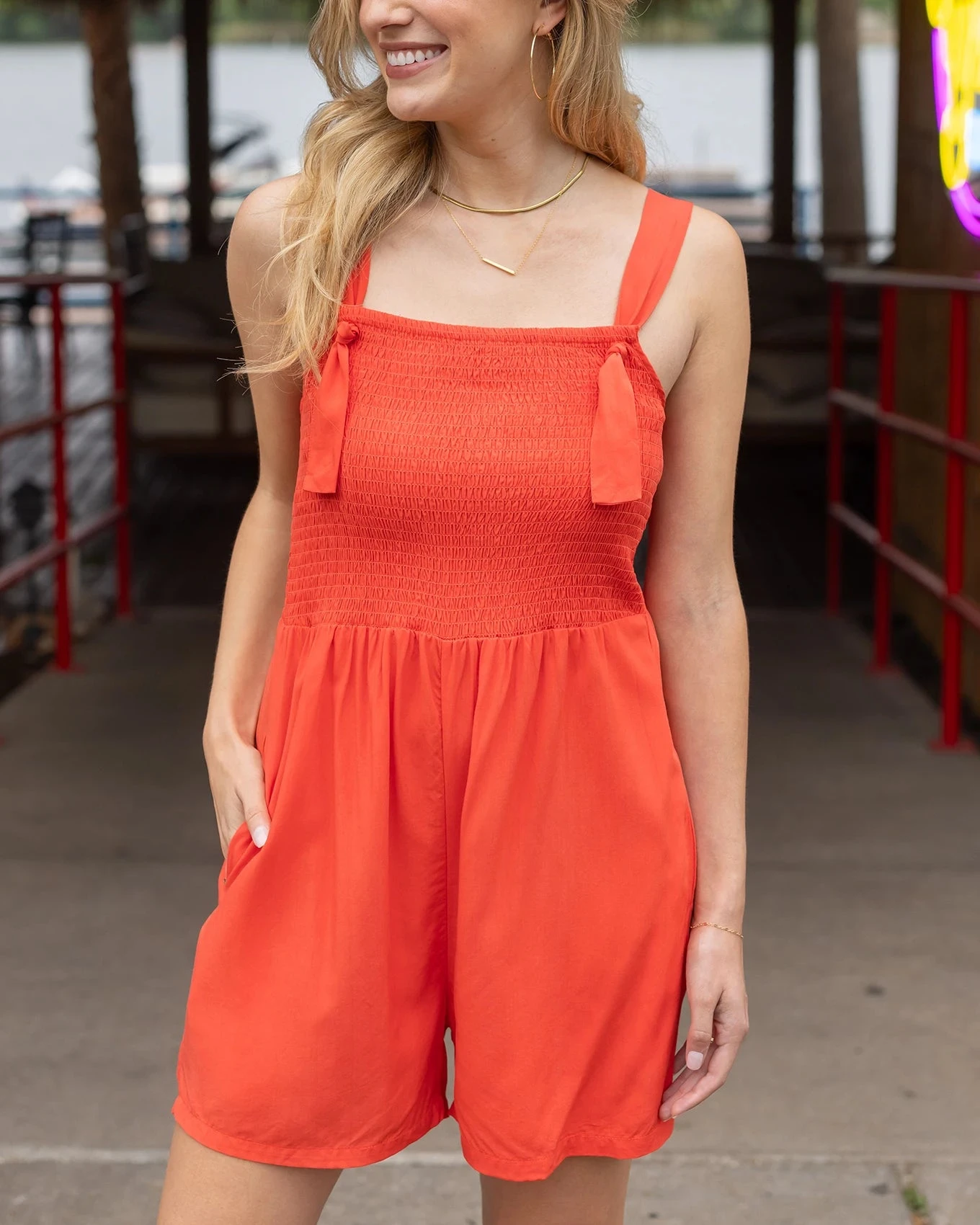 Meet the newest one-piece wonder! The Shorts Smocked Romper is a true, throw-on-and-go favorite for sunny days ahead! Featuring a relaxed fit and stretchy smocked bodice, this versatile shorts romper keeps you comfy and cute from morning coffee runs to sunset patio dinners. Adjustable tie straps let you find your perfect fit, while side seam pockets keep it functional and flattering. Dress this smocked romper up with sandals and a denim jacket, or keep it casual with sneakers—this romper does it all!