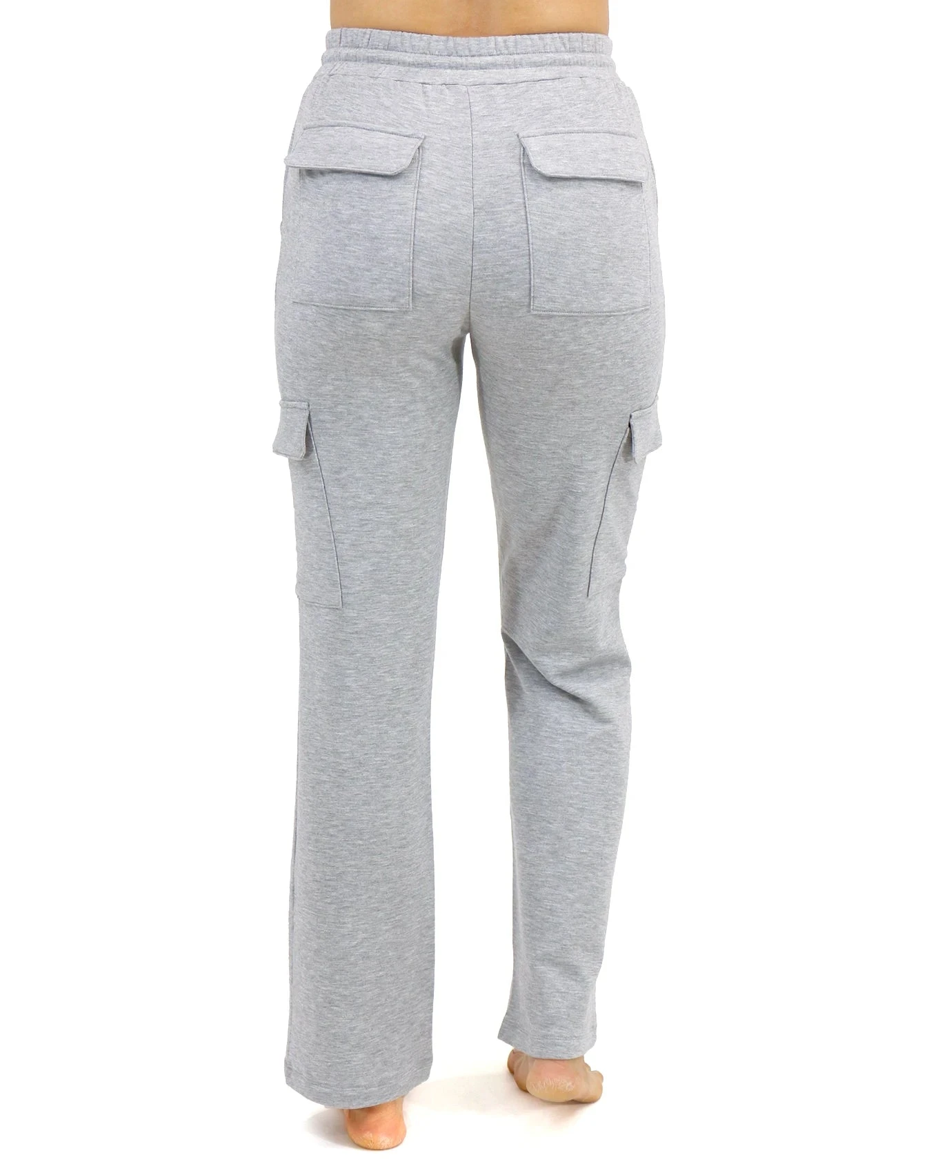 Straight leg cargo pant with front pockets, comfort elastic waistband, and functional draw-cord. Has two side cargo pockets on leg and two cargo style pockets on rear.  Knit fabric is soft and has great stretch.  Fit is true to size.  If between sizes, size up.  If you prefer a slouchy fit order a size up.