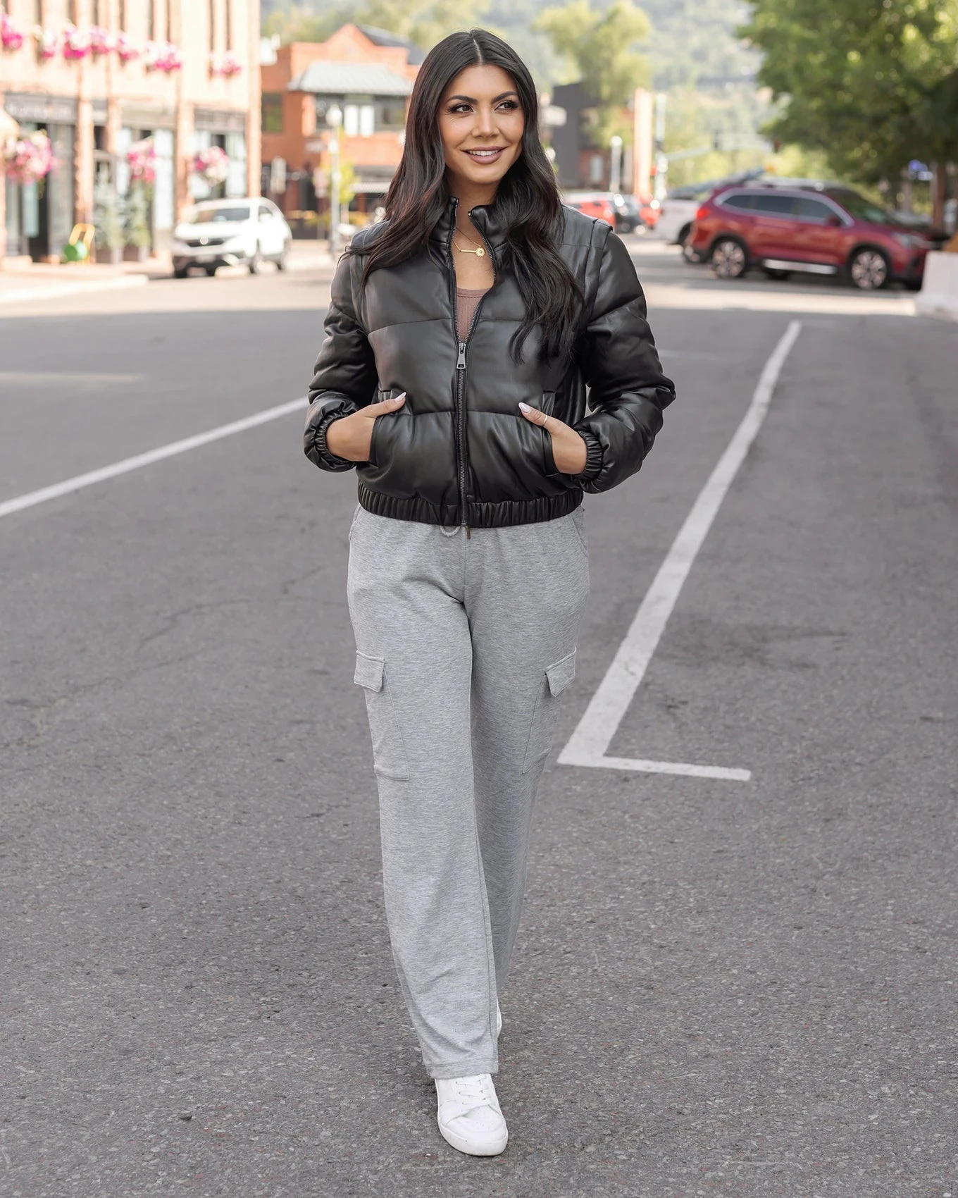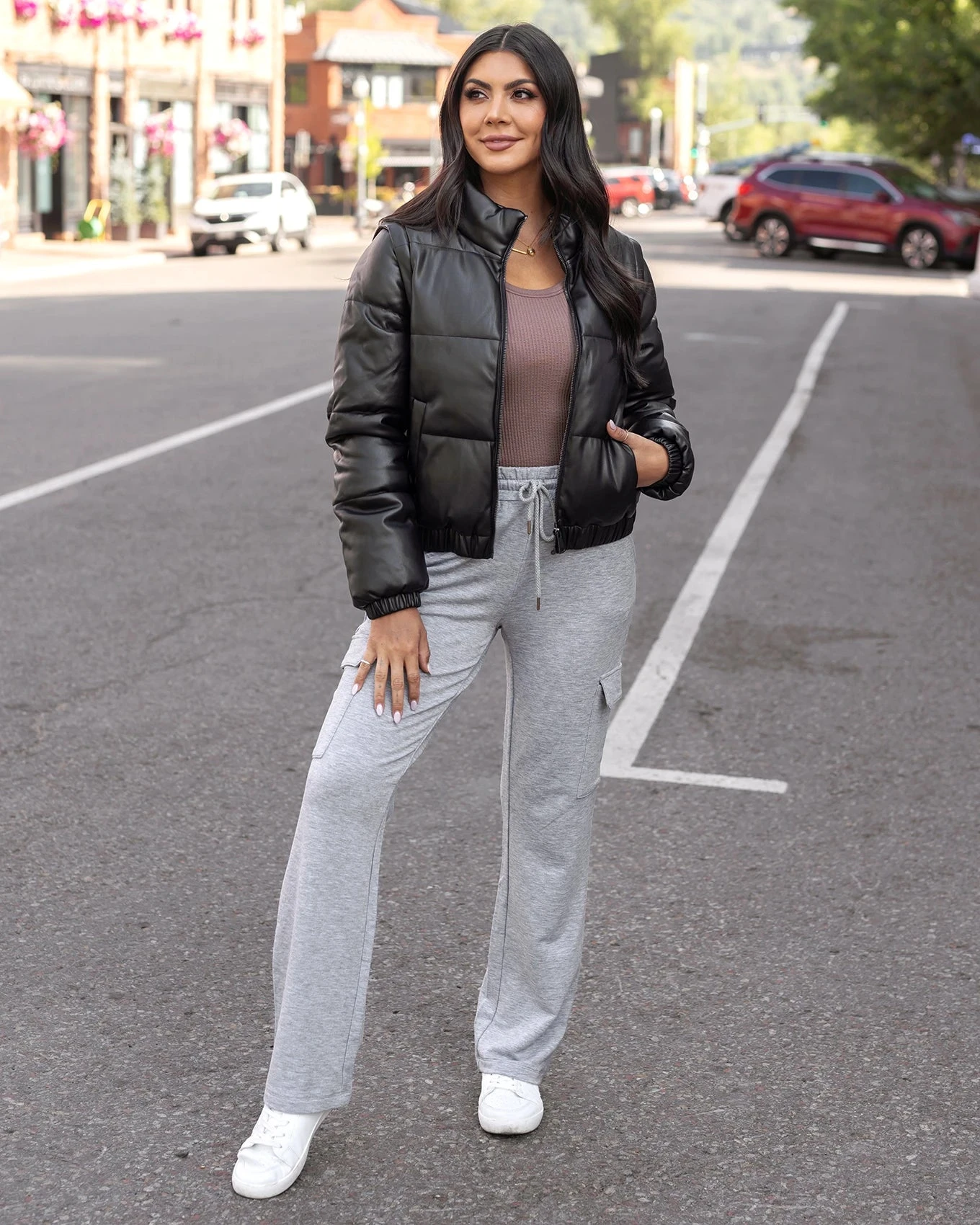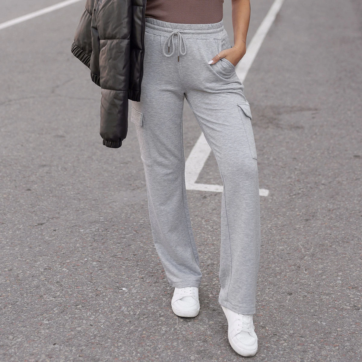 - The classic grey sweatpant – but better! You’ll love styling these comfy favorites whether headed out and about or lounging at home!