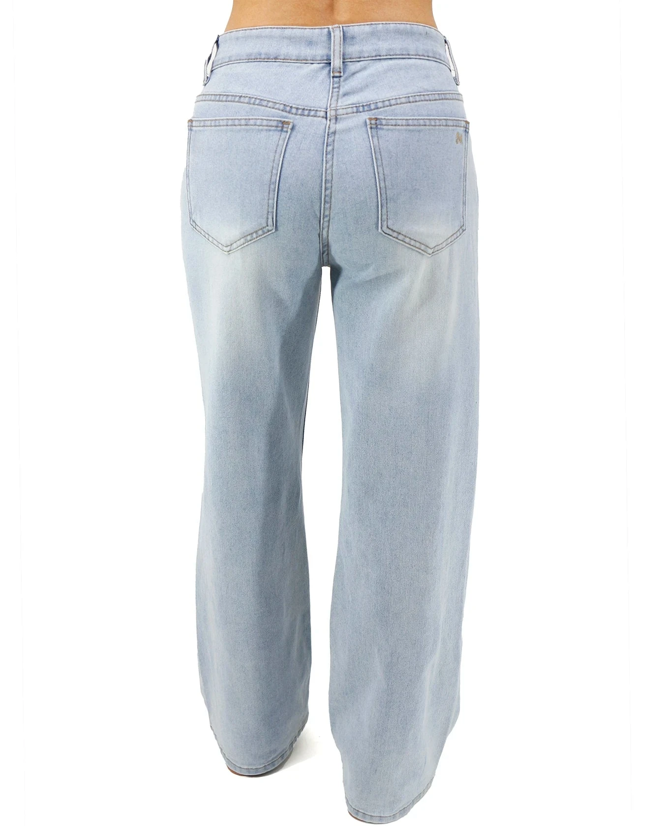 - Slouchy, wide leg, denim jeans in light-wash distressed or non-distressed