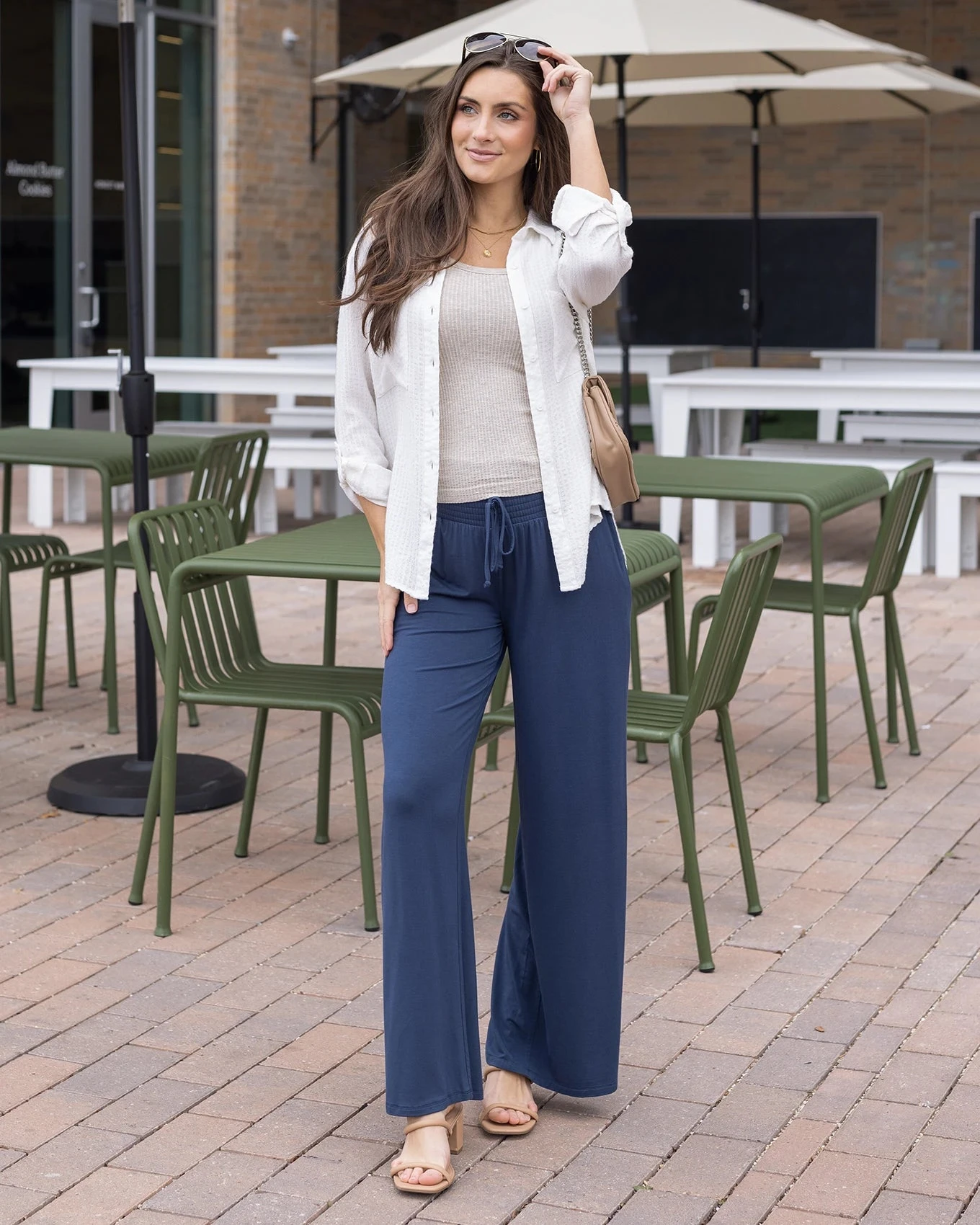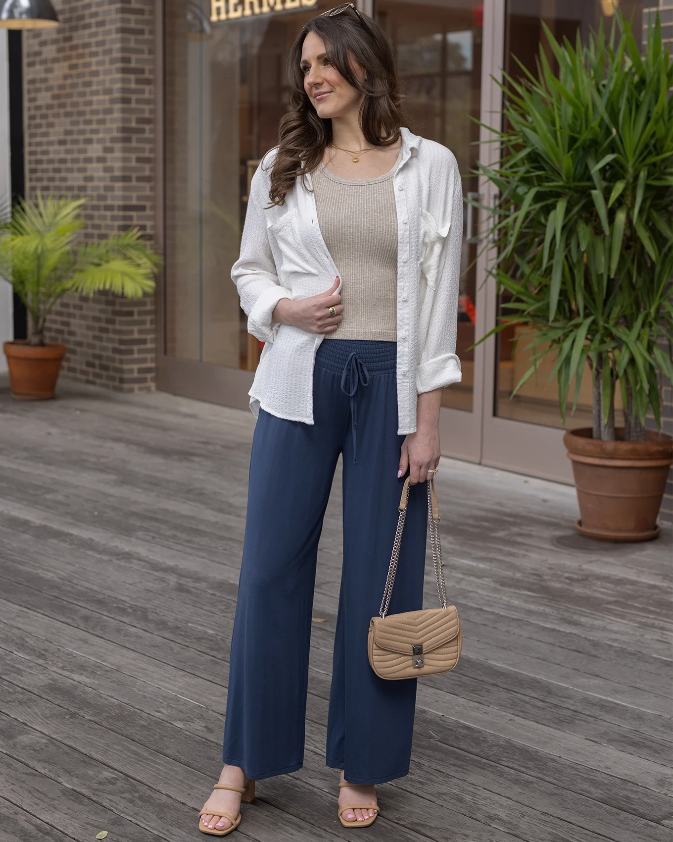 Level up your lounge game with our customer favorite Smocked Wide Leg Lounge Pants! Our best selling lounge pants are back and are so fab, we know they won’t last long! Comfortable, flowy, and with a fit that feels like a dream, these smocked pants feature a brand new smoke blue color that’s perfect for spring. The best part? The finished hemline can be cut to length for a custom fit that’s just right for you!