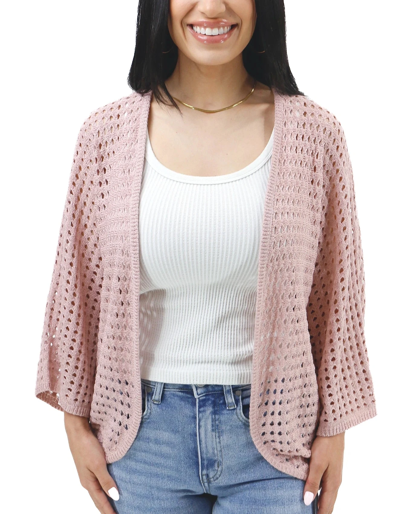 - Unique, open hole knit design keeps this spring cardigan lightweight and airy