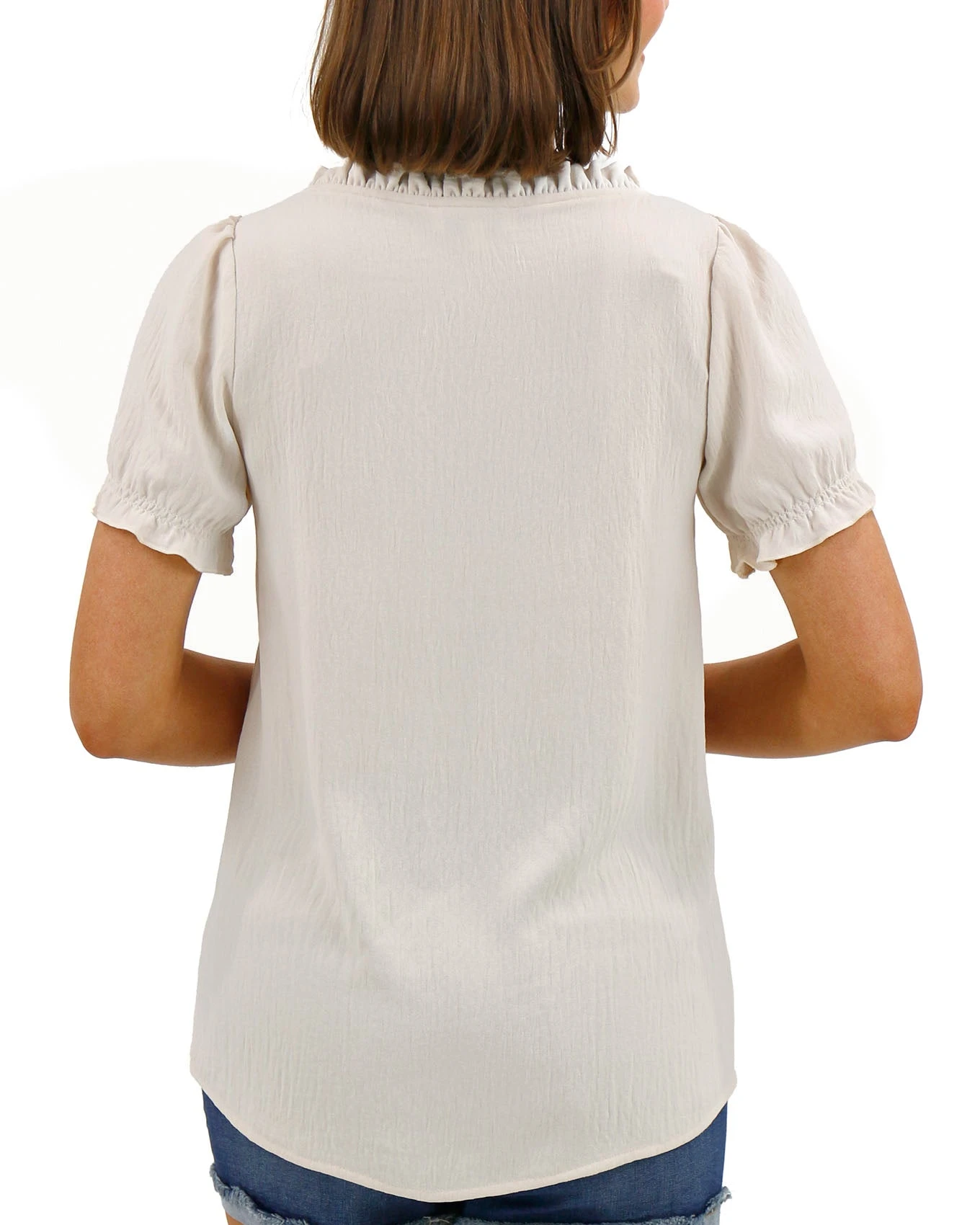 The top that combines elegance and wearability: the Sweet Square Neck Top! This lovely fashion top has lightly puffed sleeves, a ruffled neckline and sleeve hem, and front pleating for absolute femininity throughout. The ultra-breezy, lightweight material makes for easy styling, as this top can be tucked without bunching or worn untucked for a gorgeous, flowy fit. Wear this square neck top to the office, brunch, and everything in between!