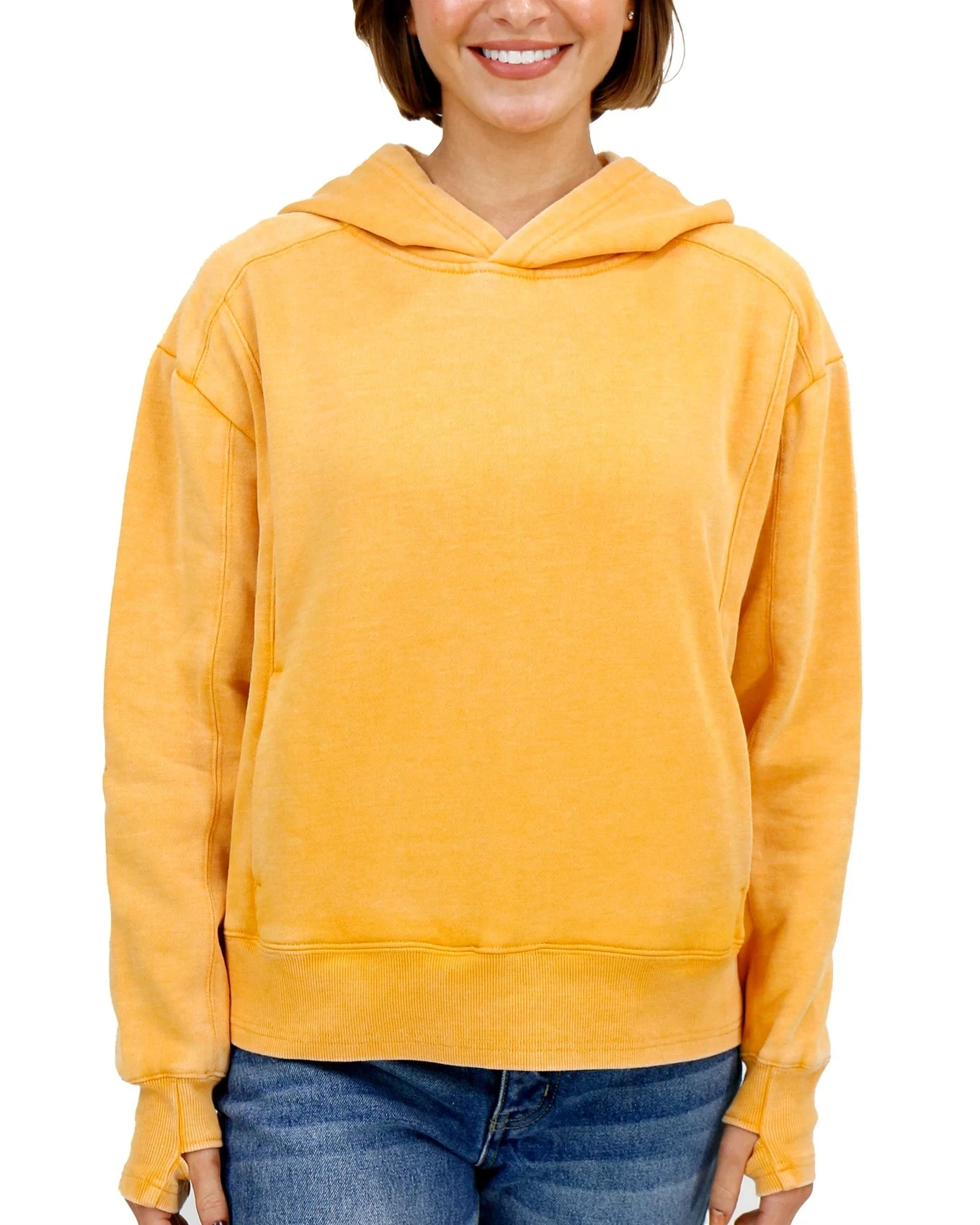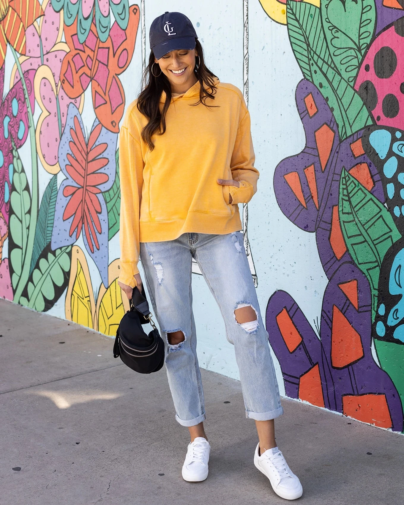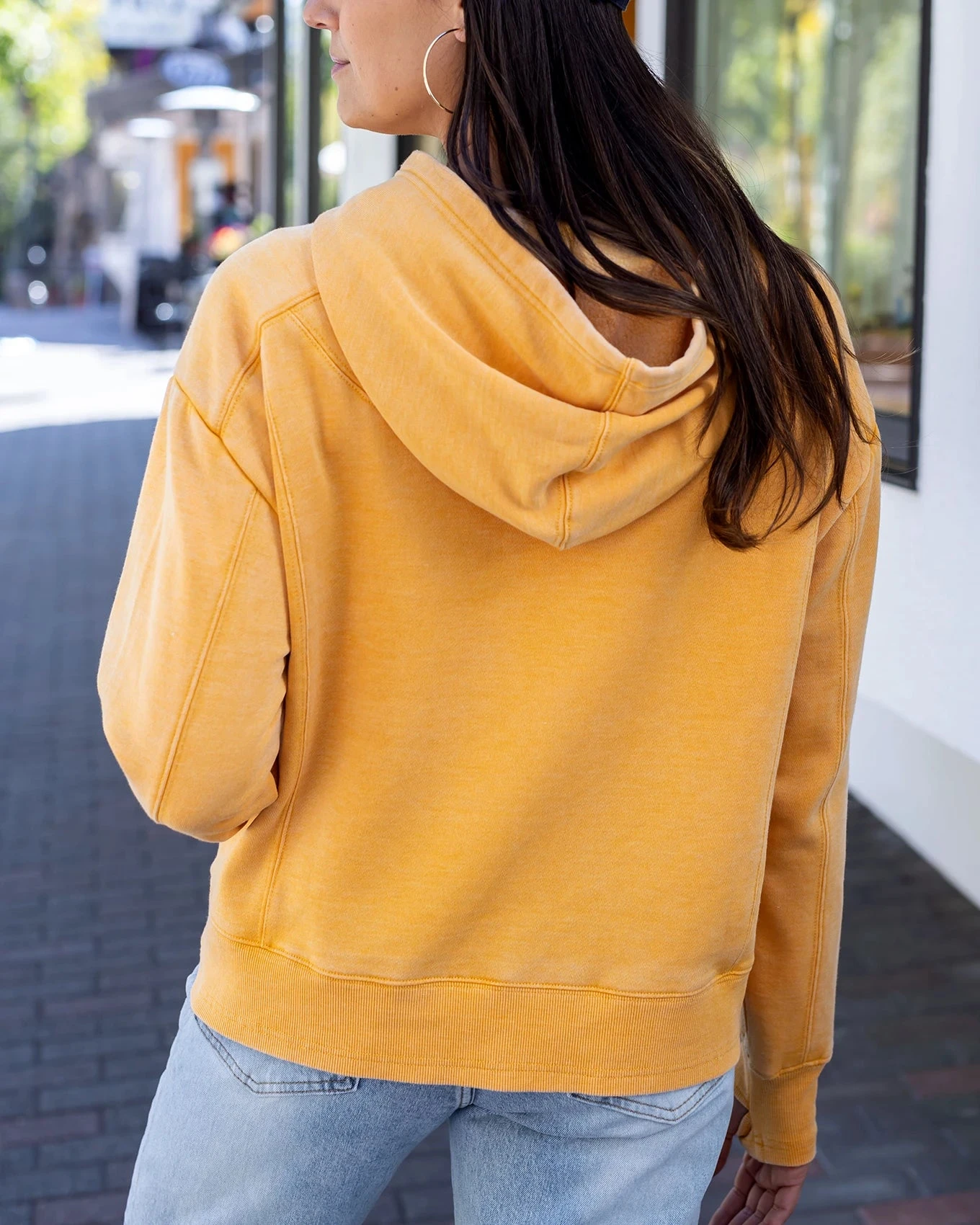 The softest fleece hoodie ever! Introducing the Vintage Washed Fleece Hoodie, the latest in our beloved Vintage Washed collection! The cozy hoodie you’ve been waiting for, this pullover fleeced favorite features a trendy, casual boxy fit, with detailed seaming and ultra, mineral washed softness that looks and feels like a million bucks – but without the high price tag! The retro inspired washed mustard tone gives your cold weather wardrobe the perfect pop of color, guaranteed to keep your style mood feeling sunny no matter how chilly the temps get!Â