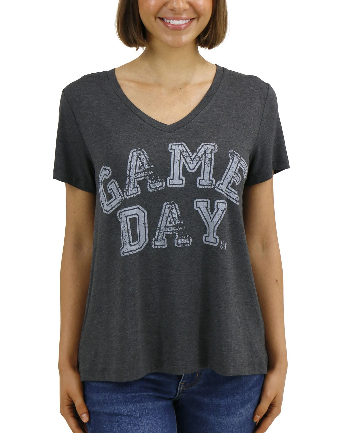 Score major style points with the new Game Day Graphic Tee! Our VIP community’s favorite graphic tee, this basic v neck t-shirt shows off a versatile “game day” graphic print that rallies your team all season long. And with its famous soft and stretchy fabric, you’ll be reaching for this favorite year round no matter who’s playing!