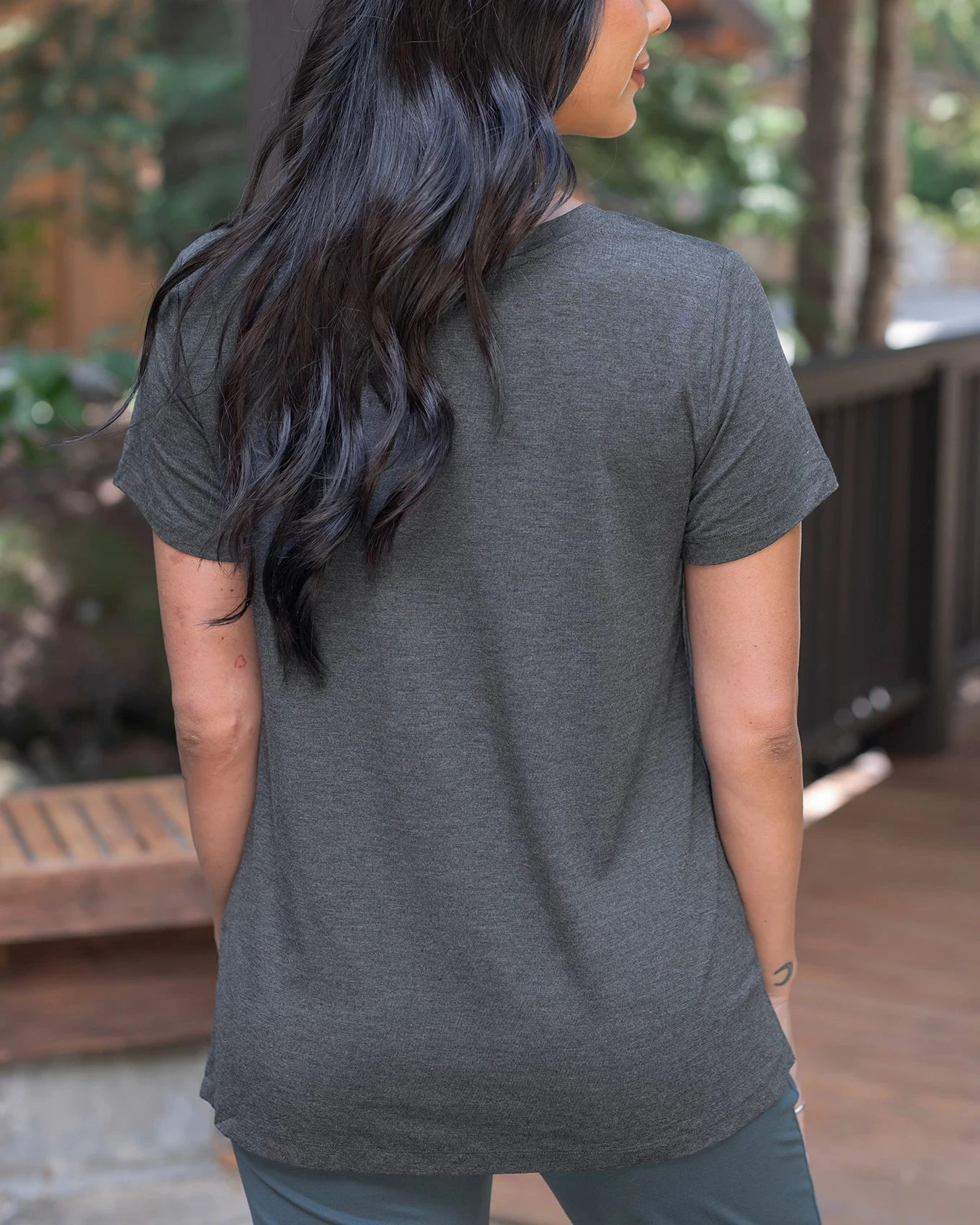 - Same incredibly soft, stretchy, jersey knit tee as our VIP Favorite Scoop Neck tee, now in a v-neck design!