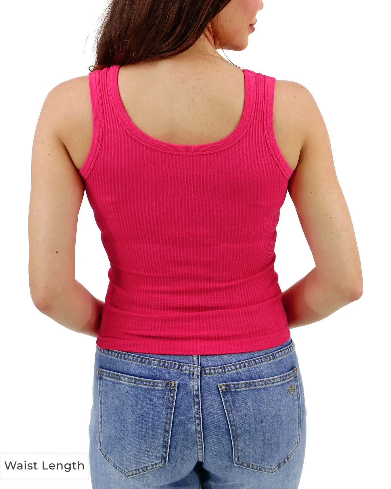 - Textured, ribbed, watermelon red tank top with flattering scoop neckline